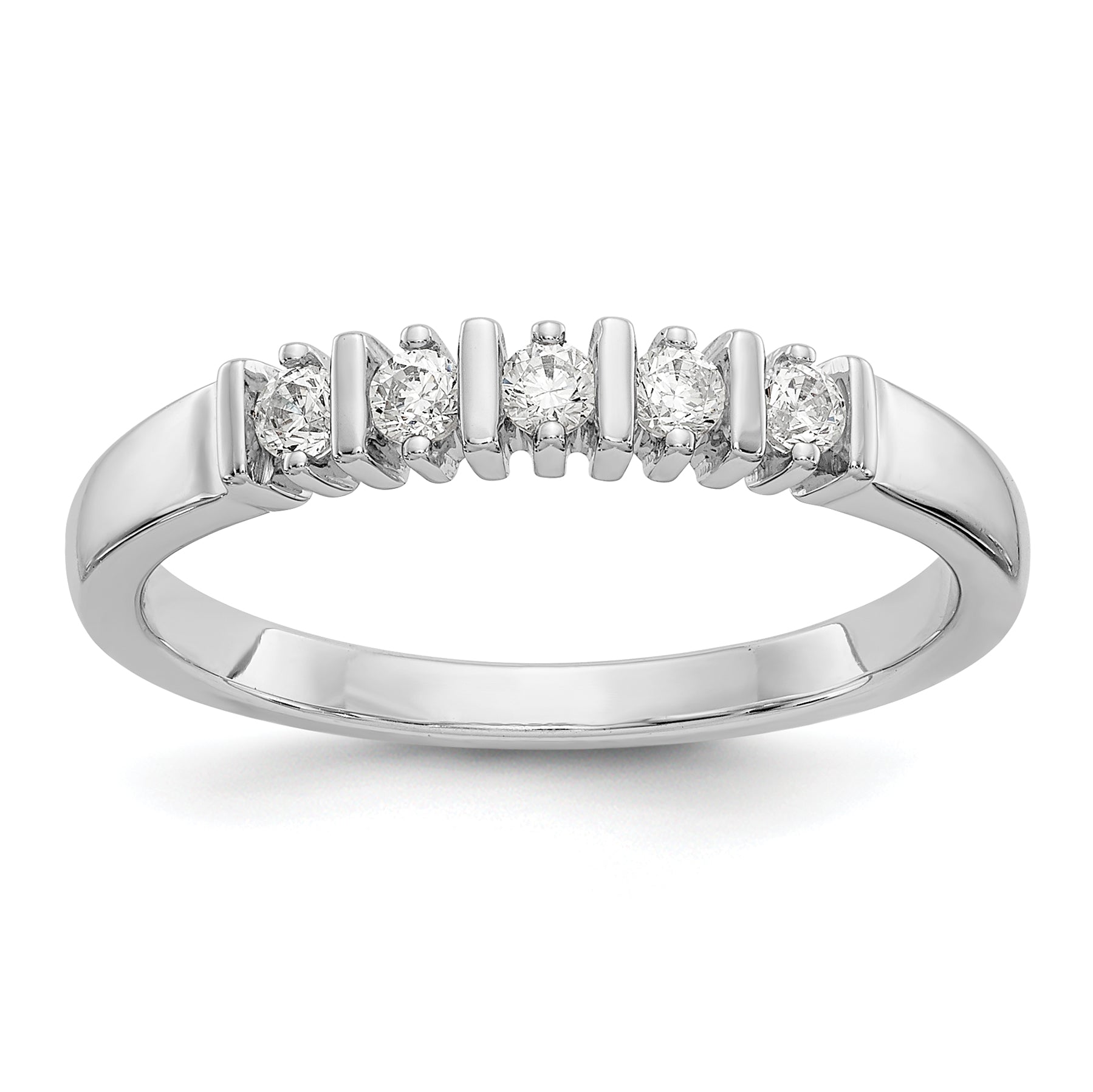 Invest in quality and style with our exquisite 0.25ct. CZ Solid Real 14K White Gold 5-Stone Wedding Band Ring.