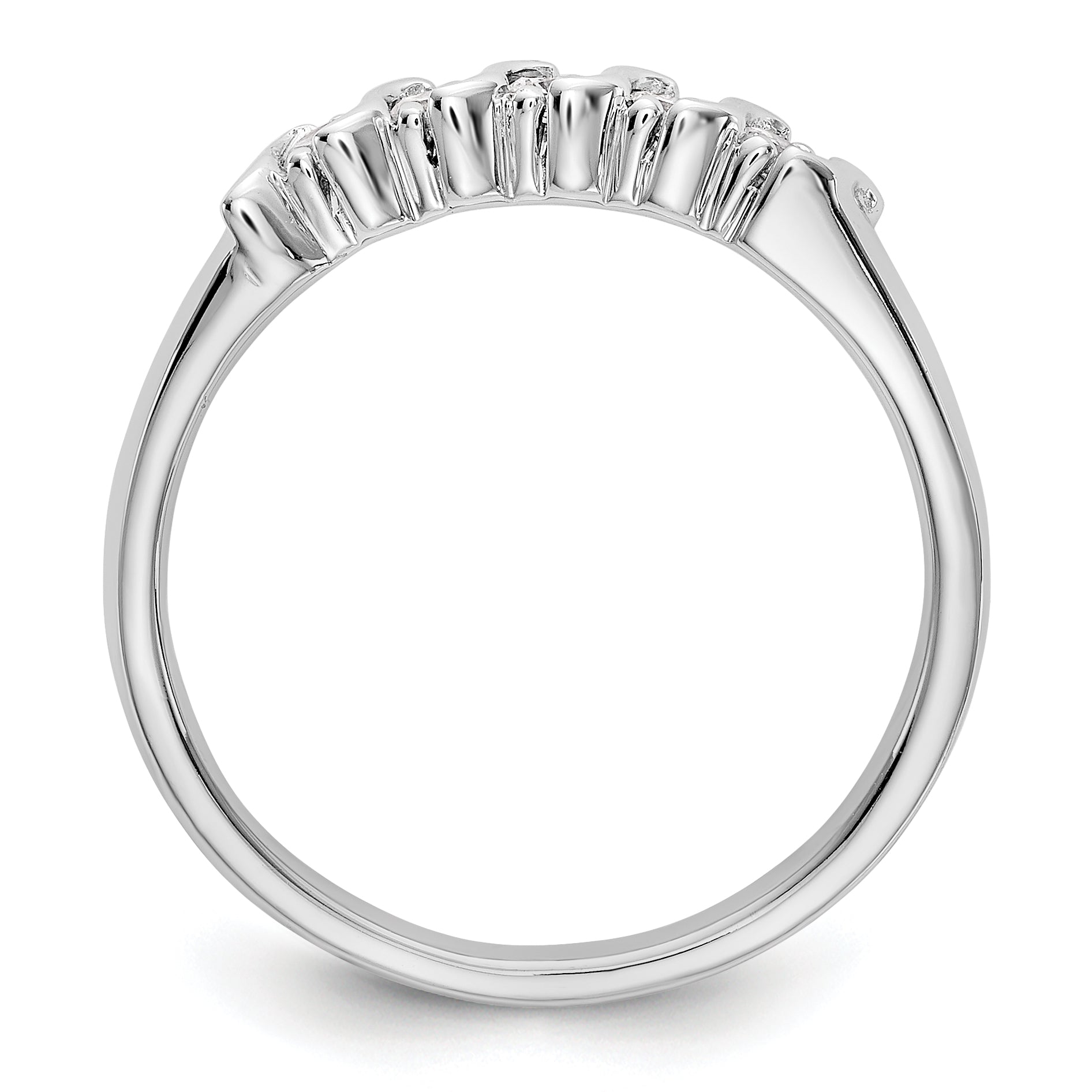 Your satisfaction is guaranteed, and your purchase comes with a 30-day money-back guarantee and a complimentary gift box. In the unlikely event that you're not happy with your purchase, please contact us directly. We are a USA based company and pride ourselves on superior customer service. The band is 3.6 to 2.3 mm (tapered) in width and has a thickness of < 1.5 mm. The ring contains 5 round CZ stones with a total weight of 0.045 ct and clarity of I1 (AA). The ring is sold as a single unit and is not recommended for engraving.