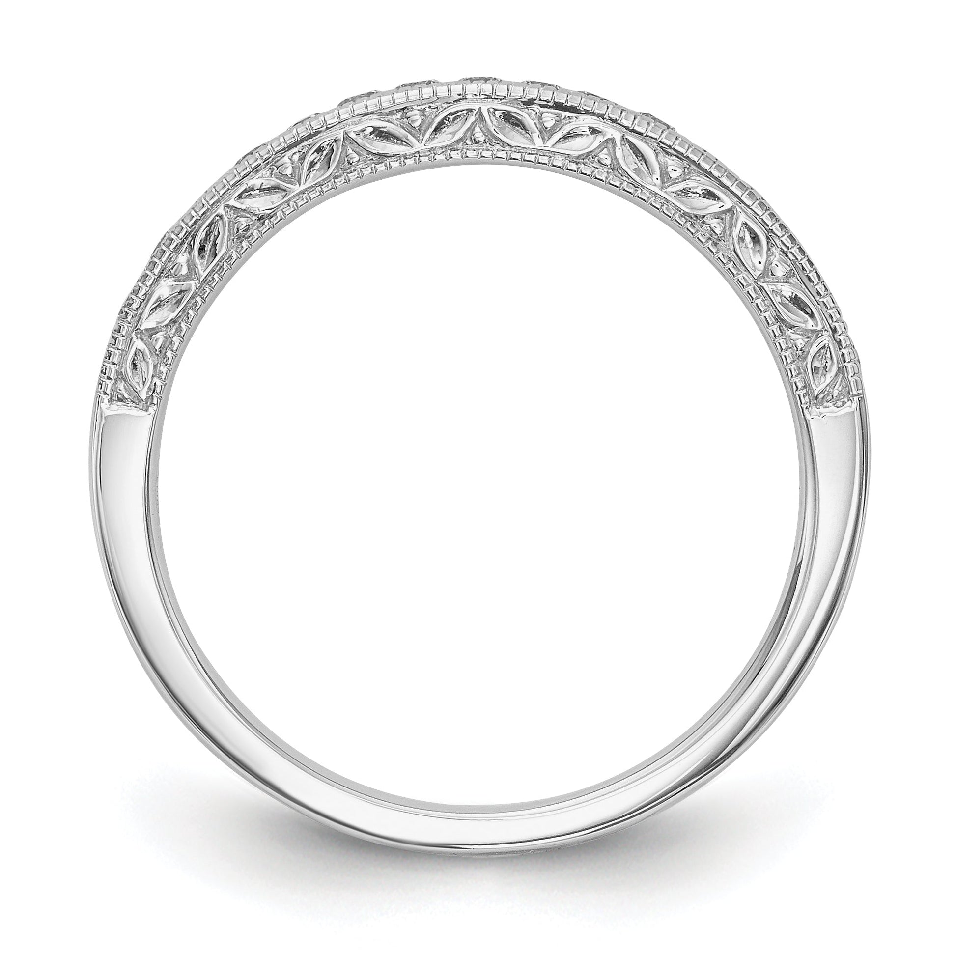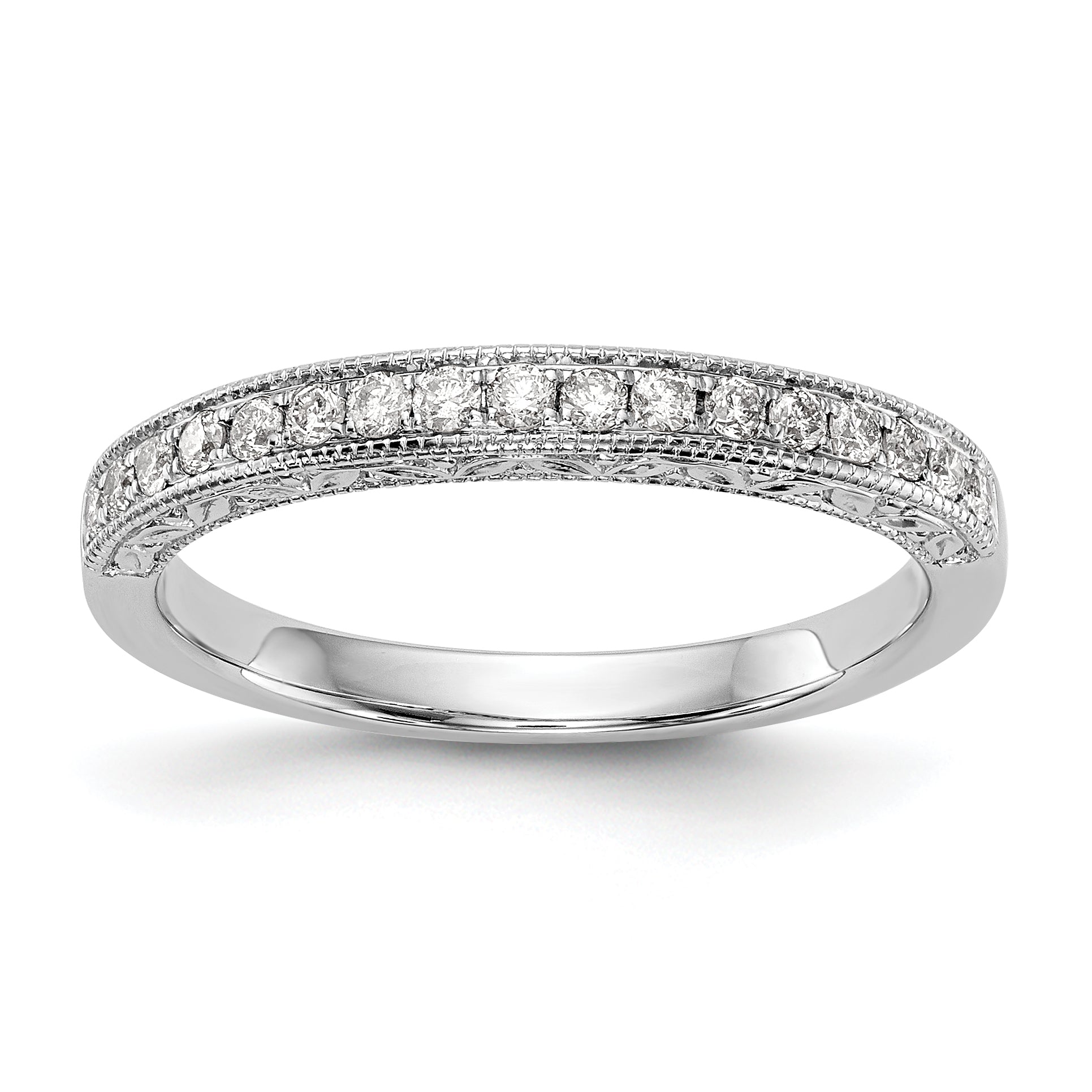 Celebrate your love with the stunning 0.25ct. CZ Solid Real 14k White Gold Wedding Band Ring. Crafted from solid 14k white gold, this ring promises exceptional quality and authenticity, stamping each piece with the hallmark of 14K gold. The gold will not oxidize or discolor, making it the perfect everyday accessory. The ring features beautiful AAA quality cubic zirconia stones hand-set and high polished by our experienced jewelers. We can also mount this ring with natural diamonds upon request for an additional charge. Whether you're buying it as a gift or treating yourself, this ring makes the perfect present for birthdays, anniversaries, graduations, weddings, engagements, bridal parties, Mother's Day, Valentine's Day, Christmas, or just to say "I love you." Plus, with our 30-day, hassle-free, money-back guarantee, you can rest assured that you'll be satisfied with your purchase. Each ring arrives in a complimentary giftbox. The band width tapers from 2.6mm to 1.6mm with a size range of 6 to 8 and increment adjustment of 0.25. Complete with 17 round-cut cubic zirconia stones totaling 0.015ct, this ring is a beautiful addition to anyone's jewelry collection. Get it today and experience the sophistication and elegance of this breathtaking wedding band.