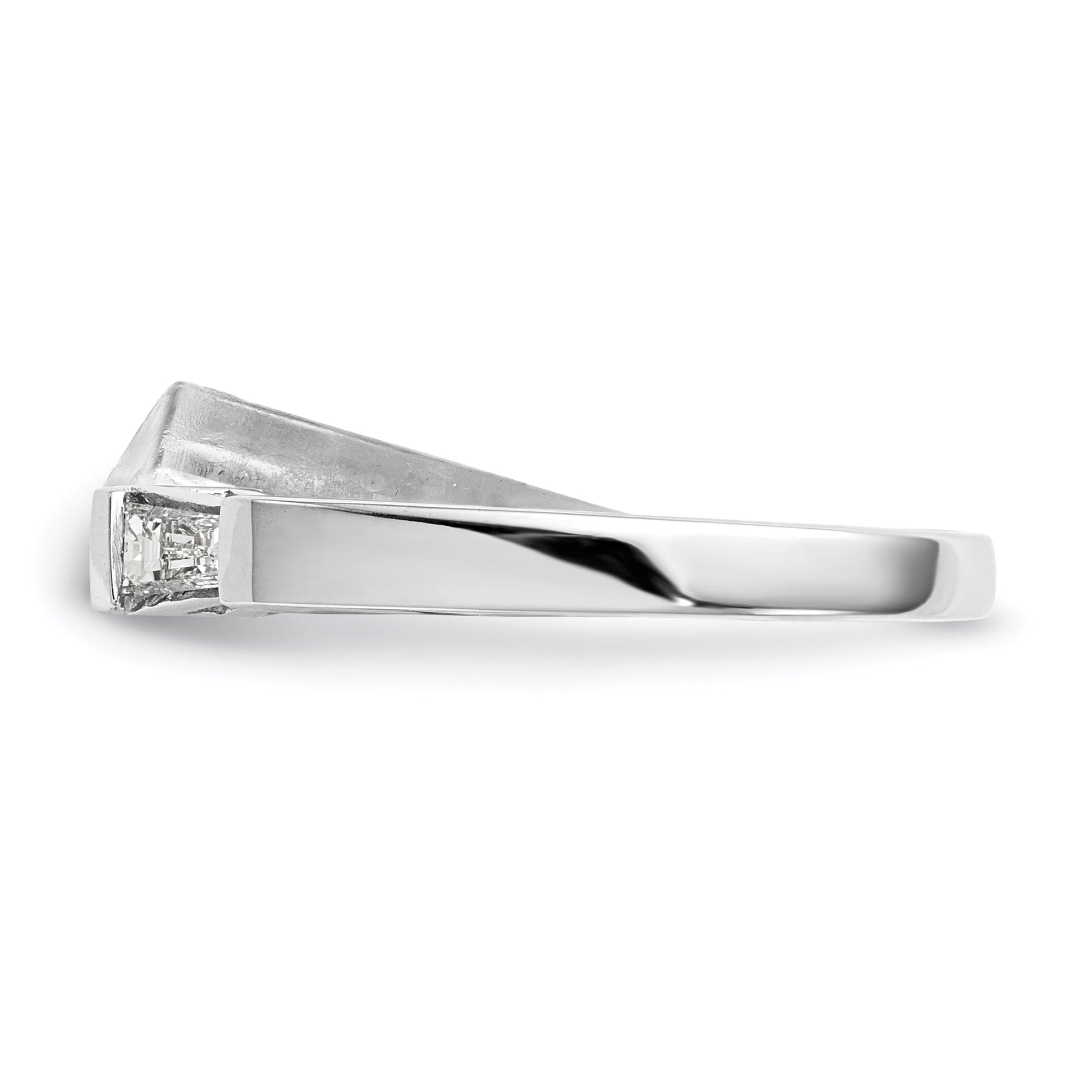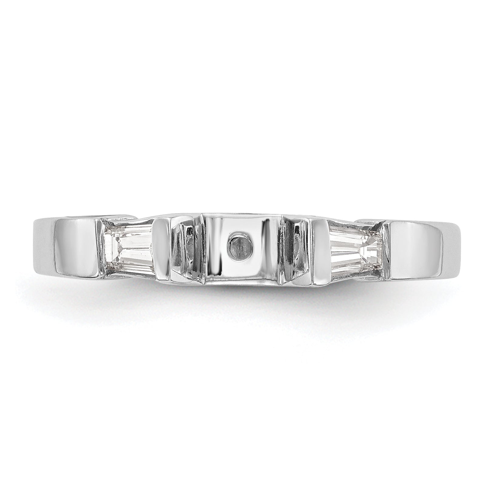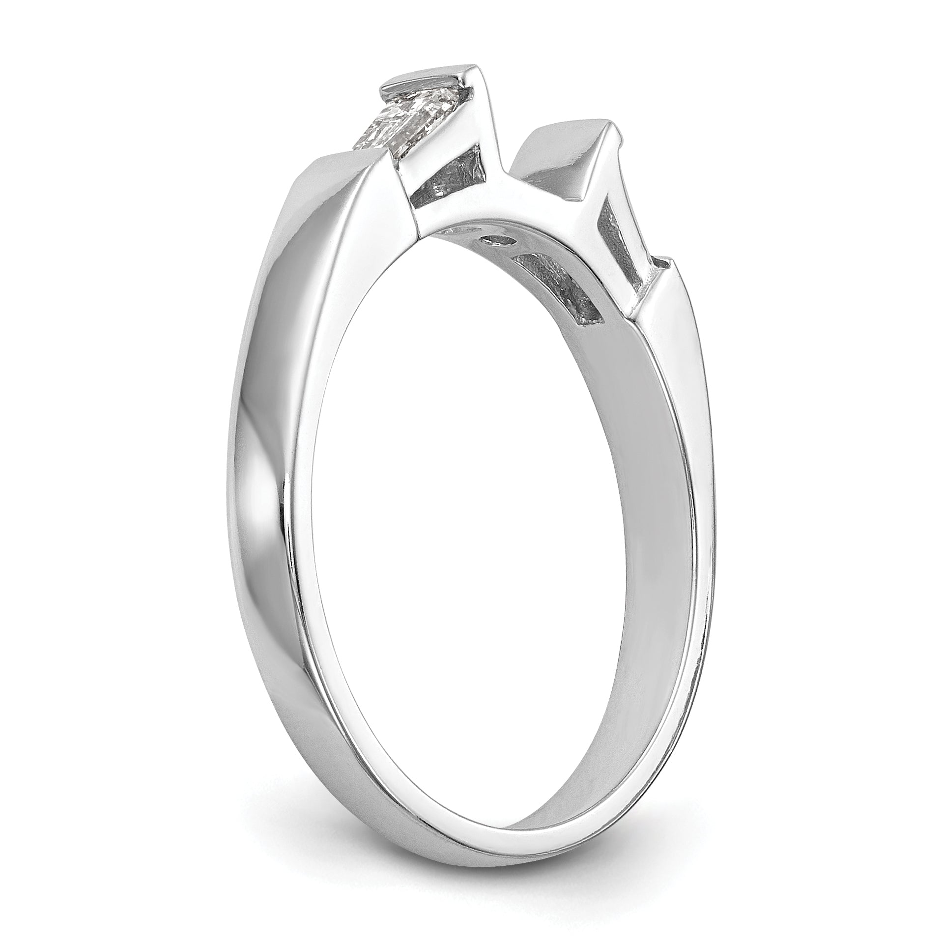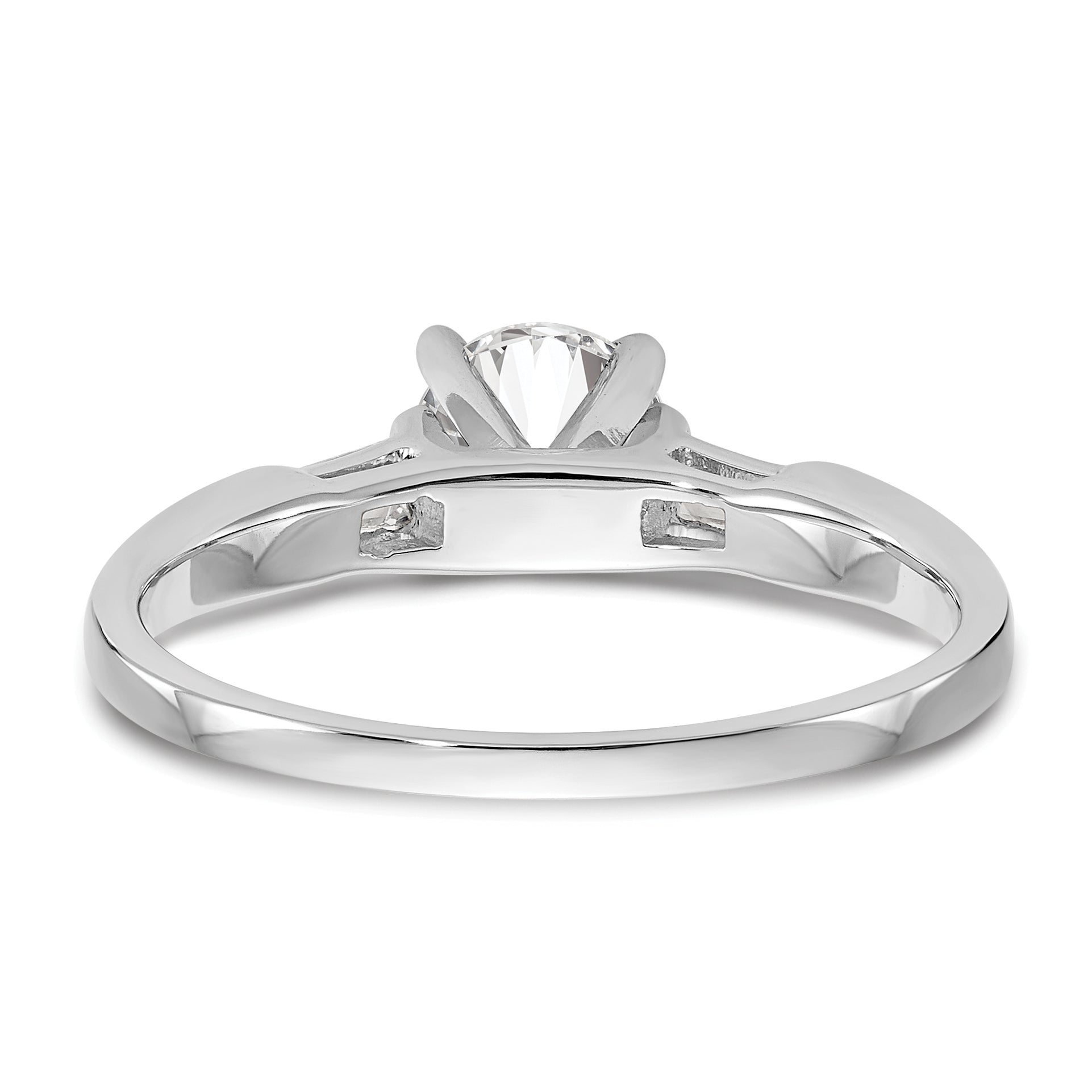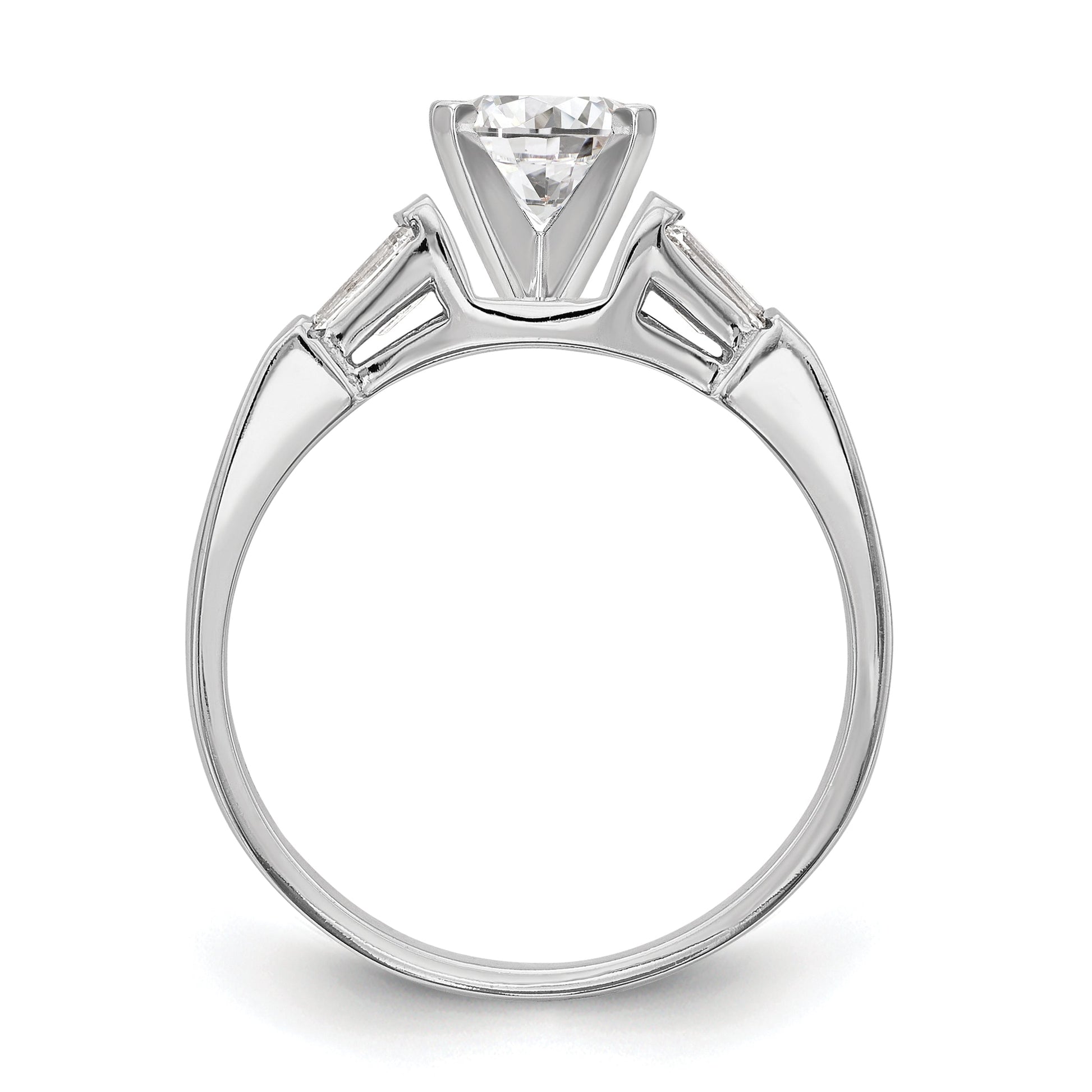 This ring features a closed back, has a head height of 5.15 mm and is crafted using the casted manufacturing process. The band width tapers from 1.59 to 1.95 mm and is rhodium plating. The stone weight for the center stone is 0.75 ct while the stone weight for the two side stones is 0.08 ct. Stone clarity is I1 (AA), and the ring is available in sizes 5 to 9 (in increments of 0.25). The ring is sizeable and comes as a semi-mount, with the center stones not included. Jewelry Type Ring, Sold By Unit Each. Material Primary - Color White, Ring Type Engagement, Edge Type Rounded, Feature 2 Solid, Stone Creation Method_2 Synthetic.