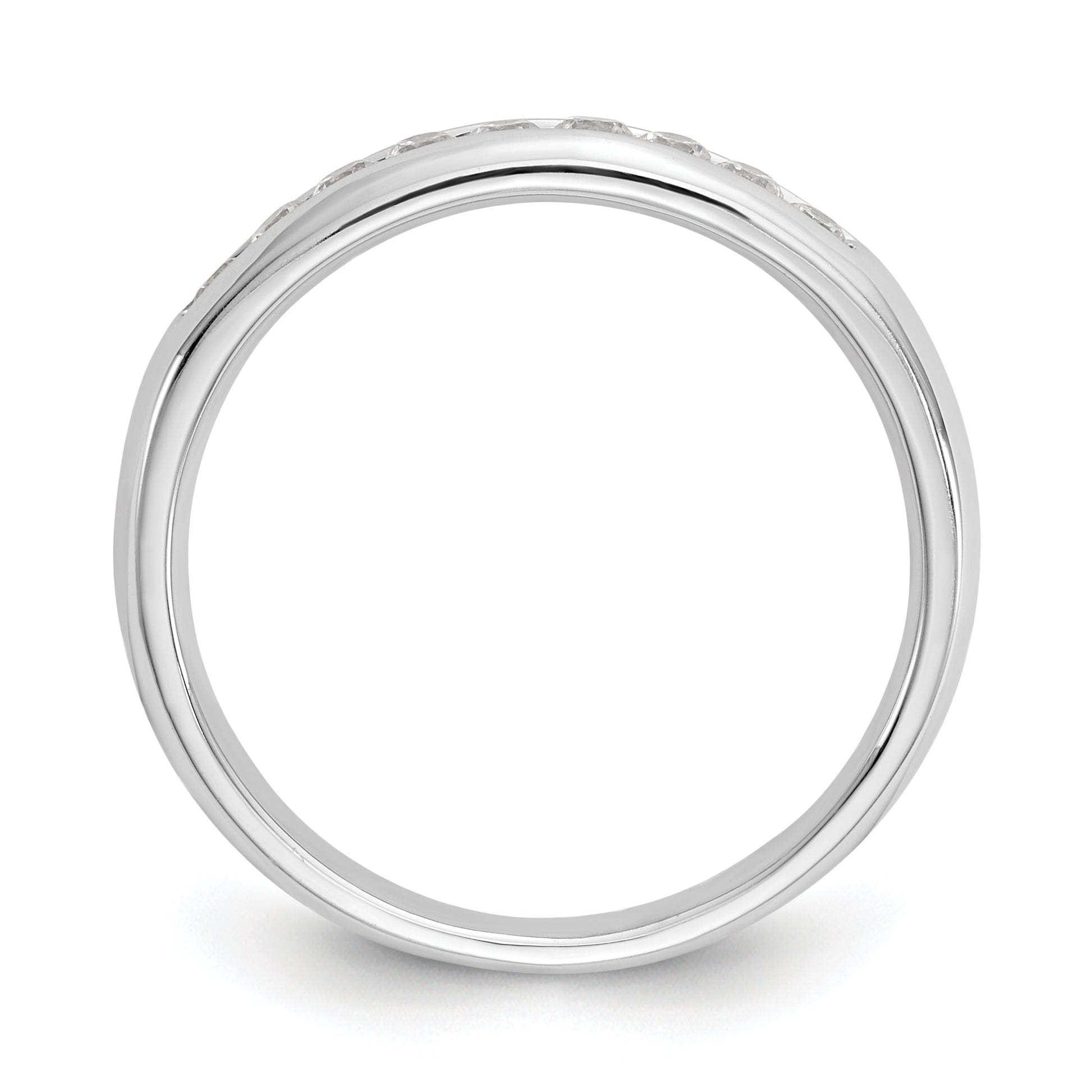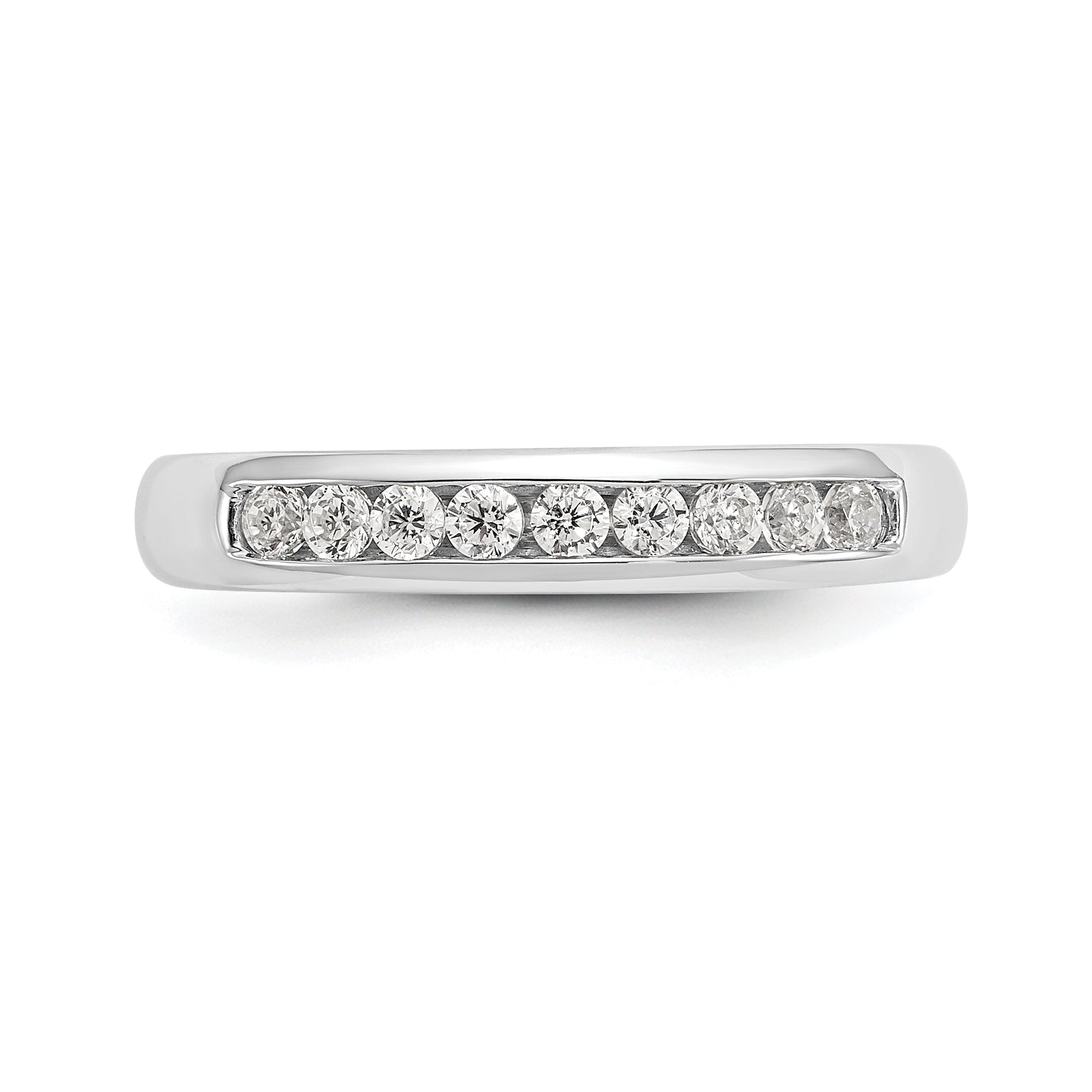 This stunning ring features a total of 9 stones, with a stone weight of 0.03ct. The band width is tapered, ranging from 3.5 to 2.9mm, and it is rhodium plated for added durability. The stone clarity is I1 (AA), and it's available in sizes 6 to 8, which are sizeable in 0.25 increments. The ring is complete with all stones included, and while it's not recommended to engrave it, the ring is a beautiful piece of jewelry that speaks for itself.