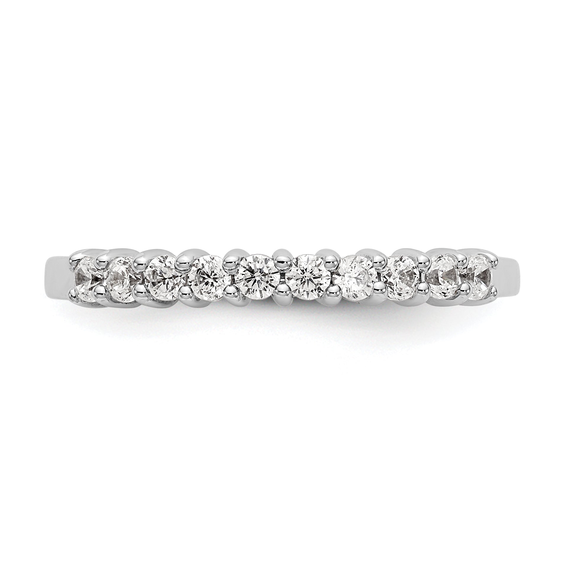 This ring features a polished finish, 10 stone mounting, rhodium plating, and a 1.9 mm band width. Its thickness is less than 1.5 mm and it is not recommended for engraving. This is the perfect wedding band ring for anyone looking for quality and affordability.