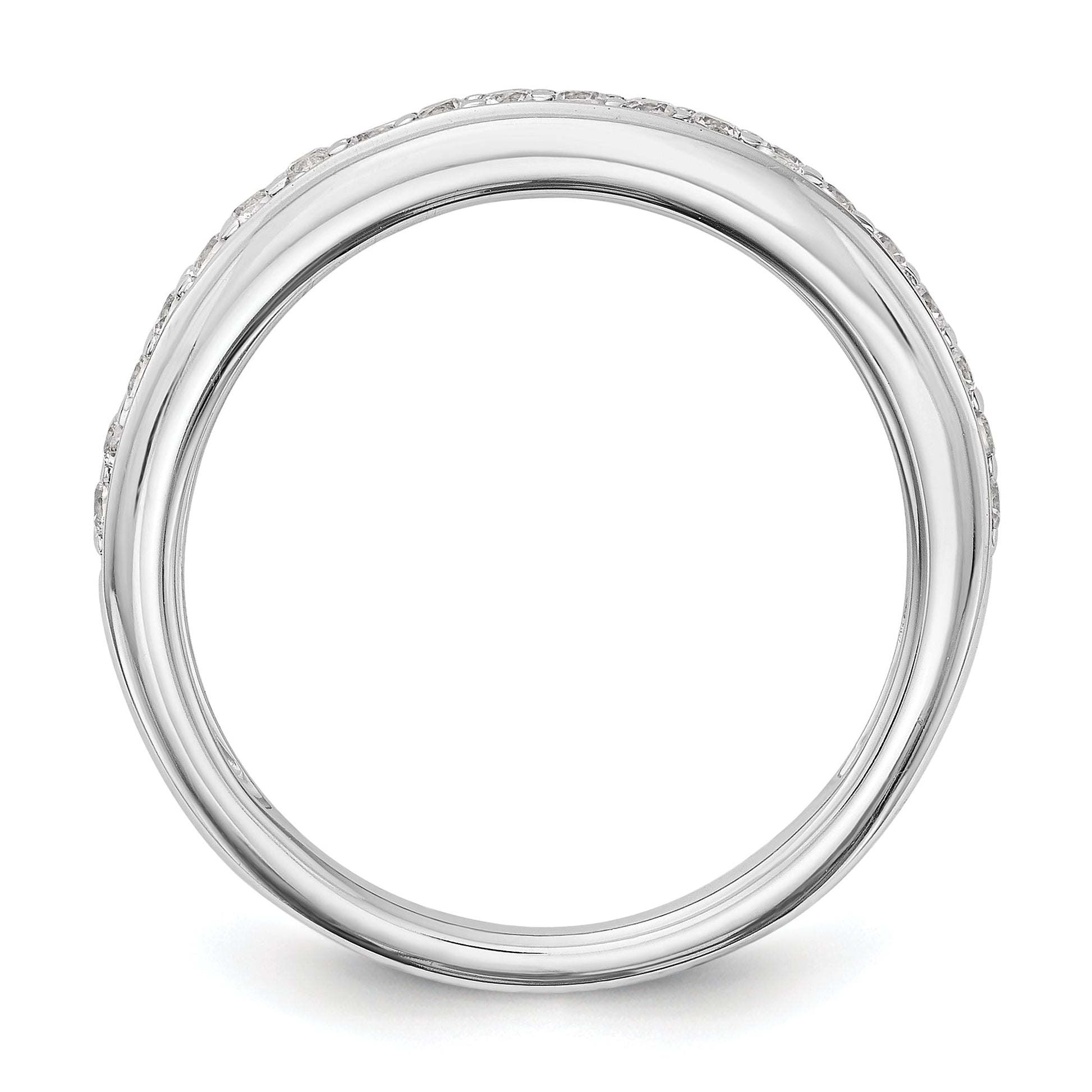 This is a wedding band ring made of real 14K white gold and set with a 0.30 carat cubic zirconia stone. The ring is polished to perfection by experienced jewelers and stamped with 14K to authenticate its quality. If desired, the ring can be made with natural diamonds as well. It comes in a gift box and can be given as a special present for occasions such as birthdays, anniversaries, weddings, graduations, and holidays. We offer a 30-day money-back guarantee for your satisfaction.