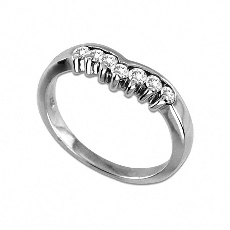 Celebrate your love with this stunning diamond anniversary band. Crafted in lustrous 14K white gold, this band features a centerpiece that gently curves to enhance its feminine allure. Sparkling round diamonds weighing 1/3 ct. are expertly prong-set to add a dazzling finishing touch to this elegant design. Impressively simple yet strikingly beautiful, this anniversary band is sure to leave her in awe.