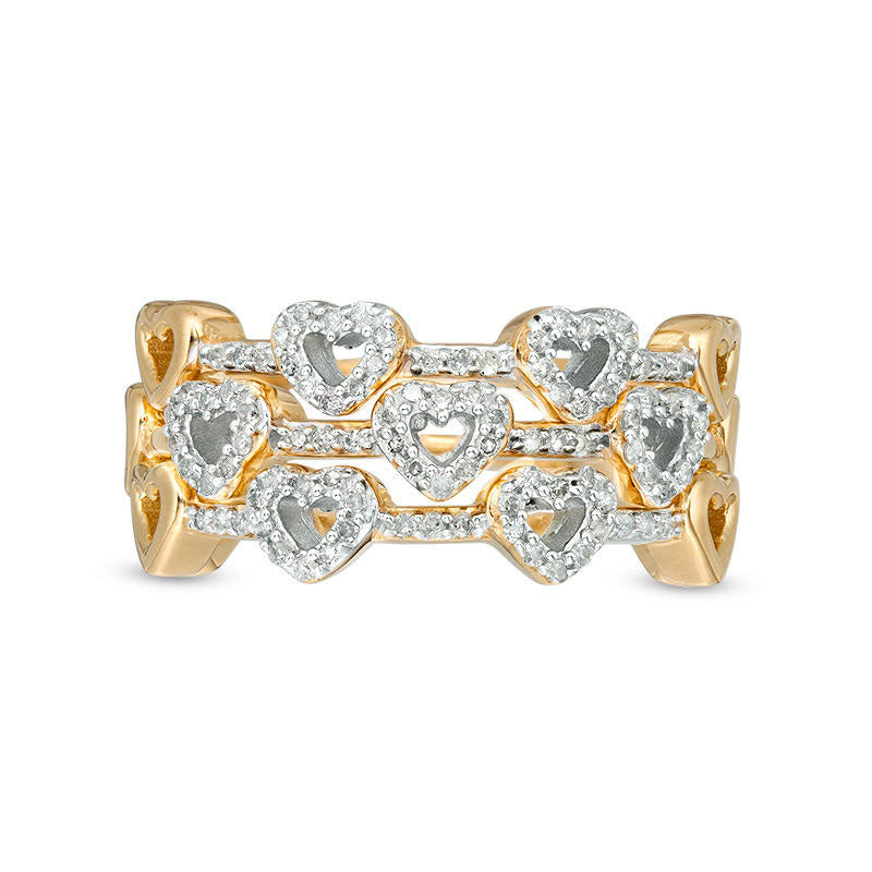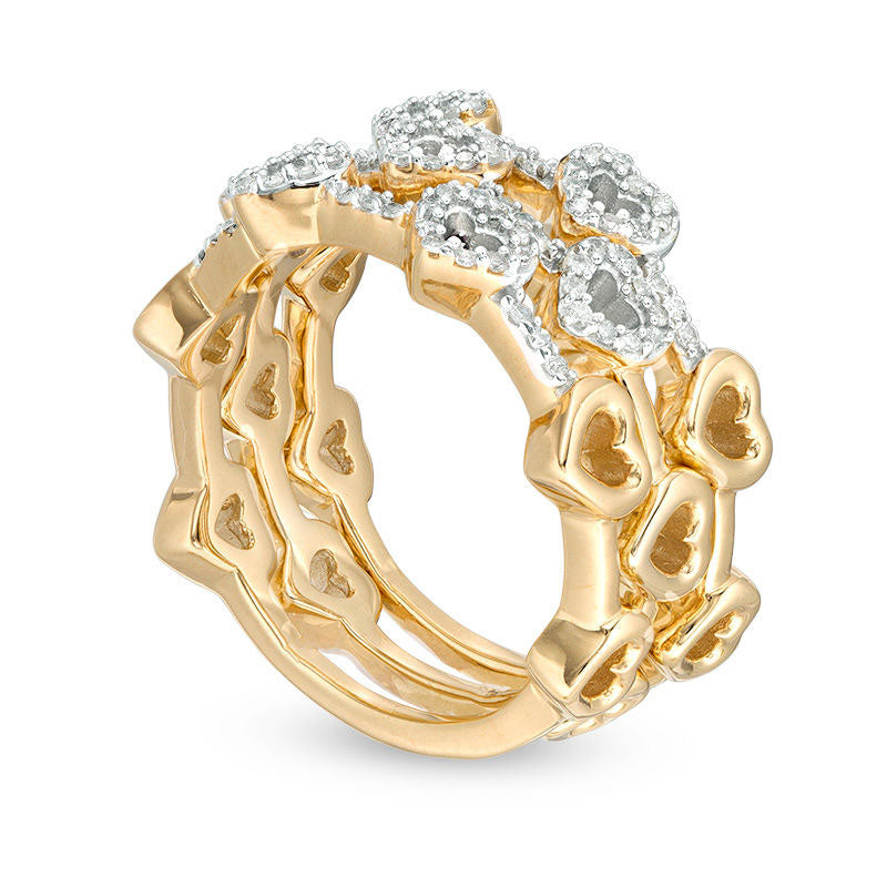 0.33 CT. T.W. Natural Diamond Heart Outline Three Piece Stackable Band Set in Sterling Silver with Solid 14K Gold Plate