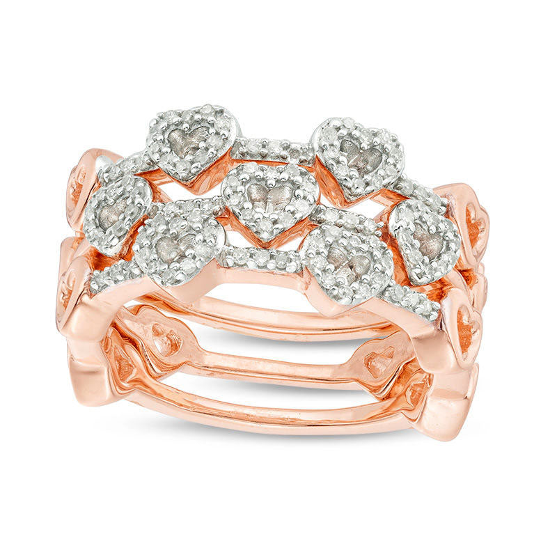 0.33 CT. T.W. Natural Diamond Heart Outline Three Piece Stackable Band Set in Sterling Silver with Solid 14K Rose Gold Plate
