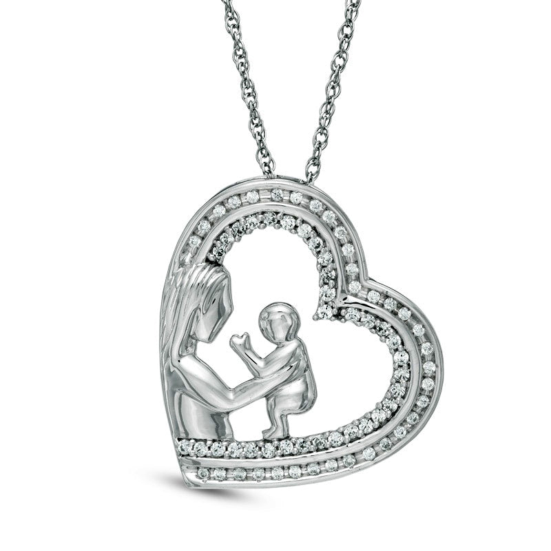 0.33 CT. T.W. Natural Diamond Motherly Love Tilted Heart Pendant in Sterling Silver