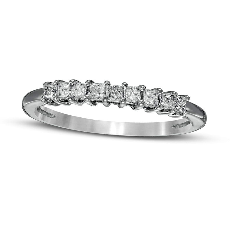 0.33 CT. T.W. Princess-Cut Natural Diamond Nine Stone Anniversary Band in Solid 10K White Gold