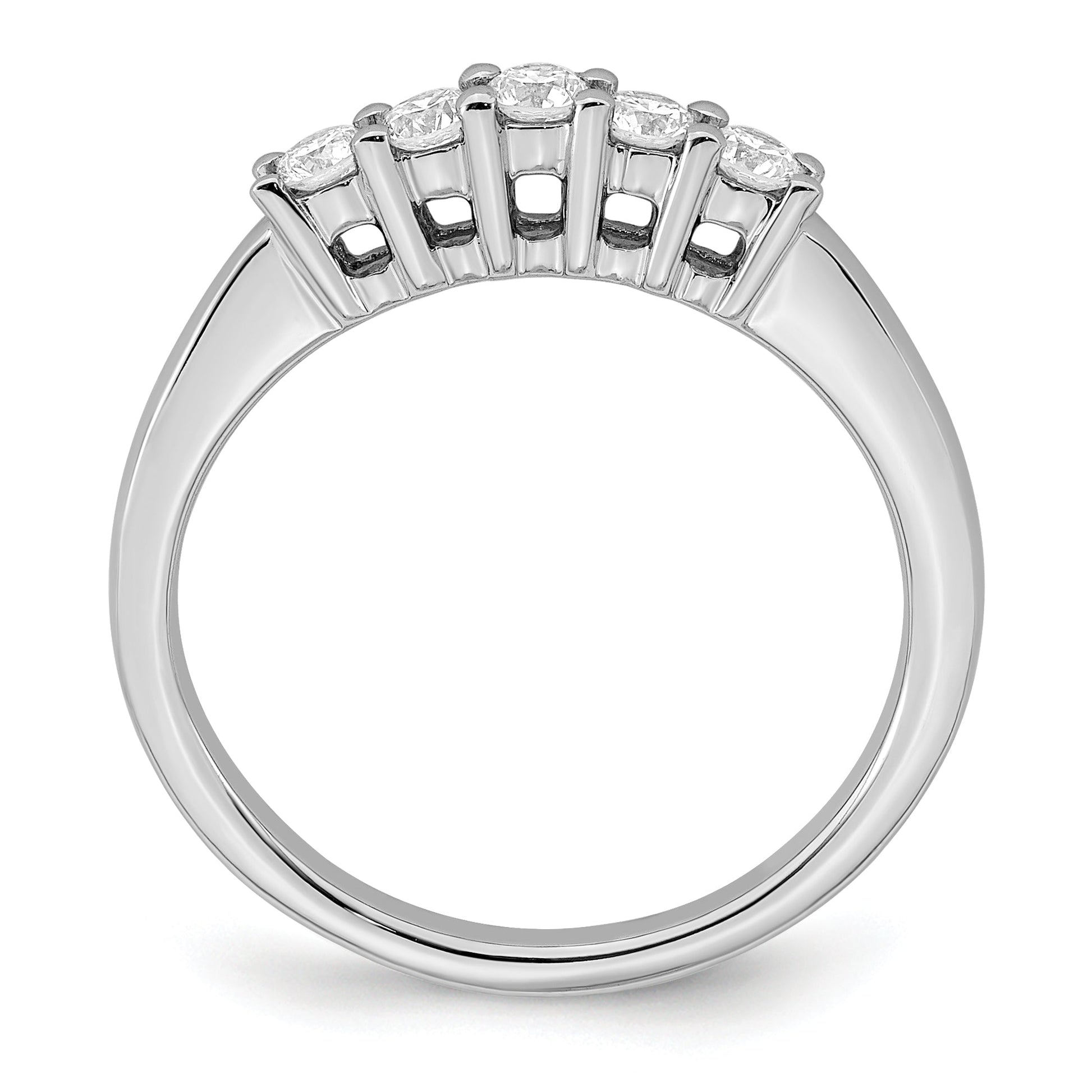 This stunning wedding band ring is made from high-quality 14K white gold and features five AAA quality cubic zirconia stones that are hand-set by experienced jewelers. The ring is also available in yellow or rose gold at no additional cost. Goldia rings are stamped with 14K to signify authenticity and exceptional quality. With a polished finish and a tapered band width of 2.5 to 2mm, this ring is the perfect choice for everyday wear, special occasions, and as a promise ring or vacation-safe alternative to natural earth-mined diamonds. Upgrades to natural diamonds are available upon request; please contact us for pricing information. The ring comes ready to gift in a complementary gift box and is covered by a hassle-free 30-day money-back guarantee. As a USA-based company, we pride ourselves on our superior customer service. This piece of jewelry is complete with all stones included and is sizeable, with a sizing adjustment increment of 0.25. The synthetic cubic zirconia stones are of exceptional quality and have a minimum size of 2.5 mm for each stone. The ring's thickness is less than 1.5mm, and while it is not recommended for engraving, it is still a perfect addition to your jewelry collection. Whether you're celebrating a special occasion or celebrating yourself, this ring is an elegant choice. So why wait? Make your purchase today and enjoy wearing this timeless piece of jewelry on your finger.