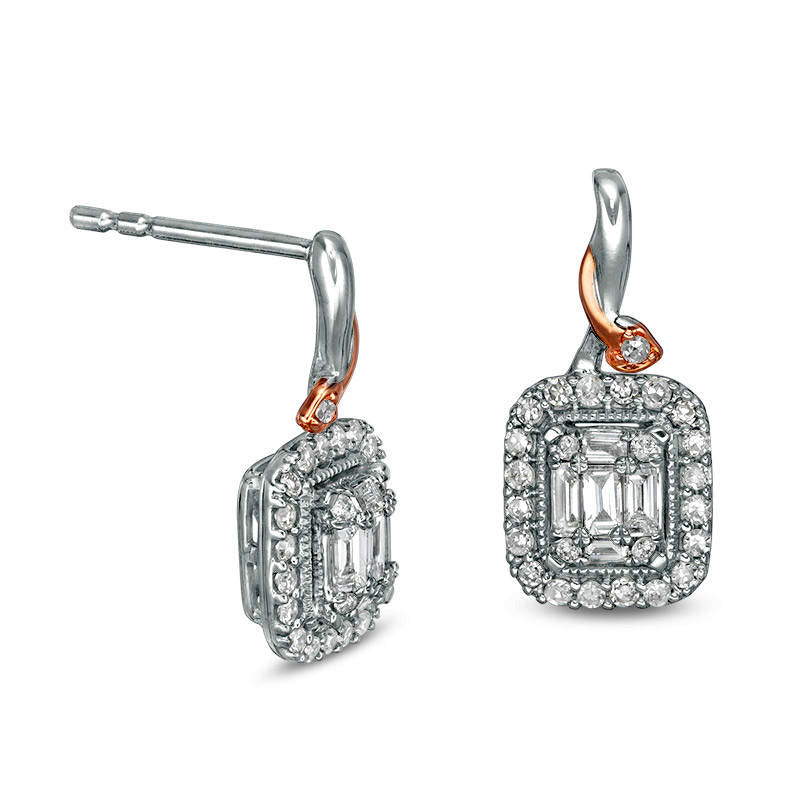 0.38 CT. T.W. Composite Diamond Rectangular Frame Heart Twist Drop Earrings in 10K Two-Tone Gold