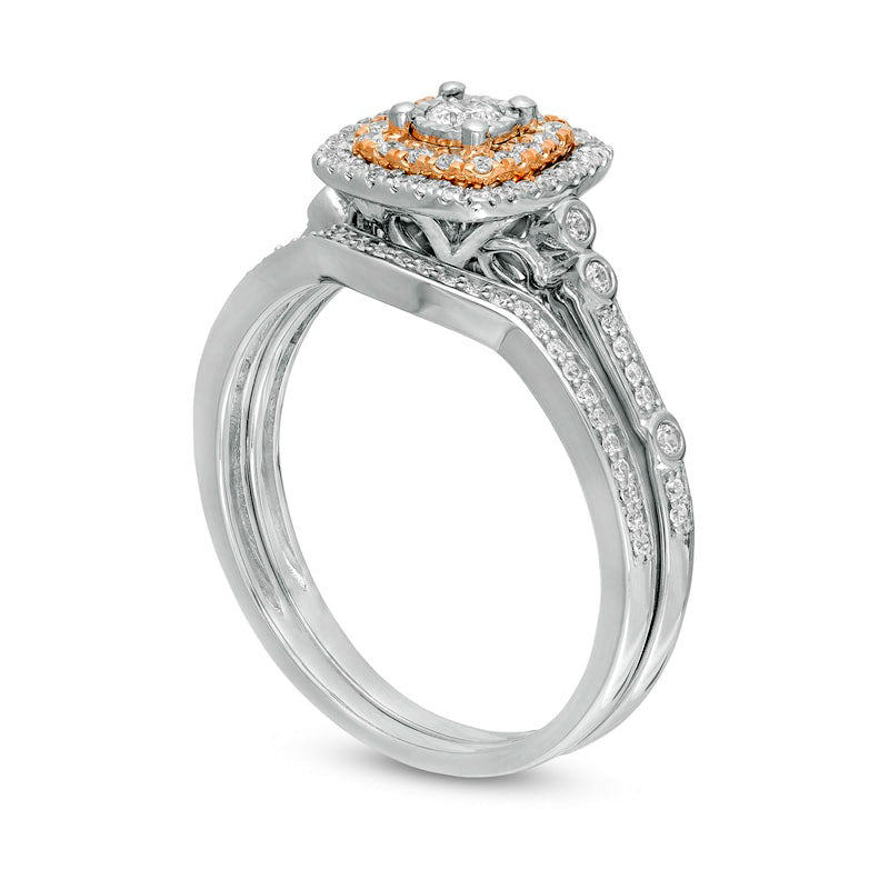 0.38 CT. T.W. Composite Natural Diamond Double Cushion Frame Bridal Engagement Ring Set in Solid 10K Two-Tone Gold