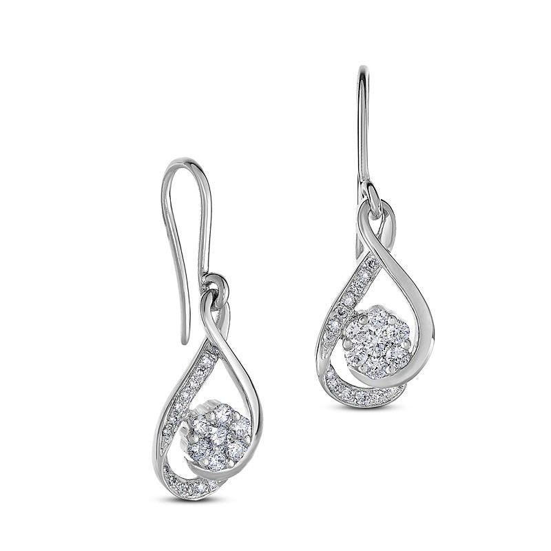 0.38 CT. T.W. Diamond Composite Twist Teardrop Earrings in 10K White Gold