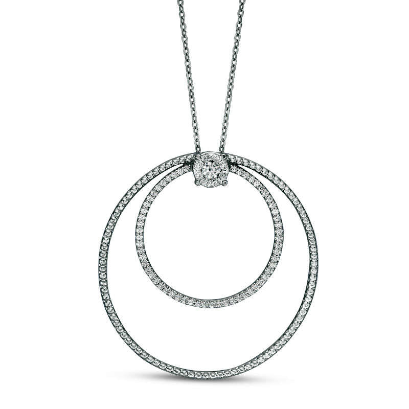 0.38 CT. T.W. Natural Diamond Double Open Circle Pendant in 10K White Gold