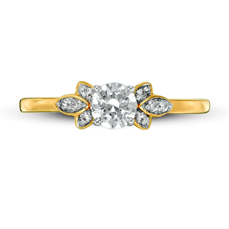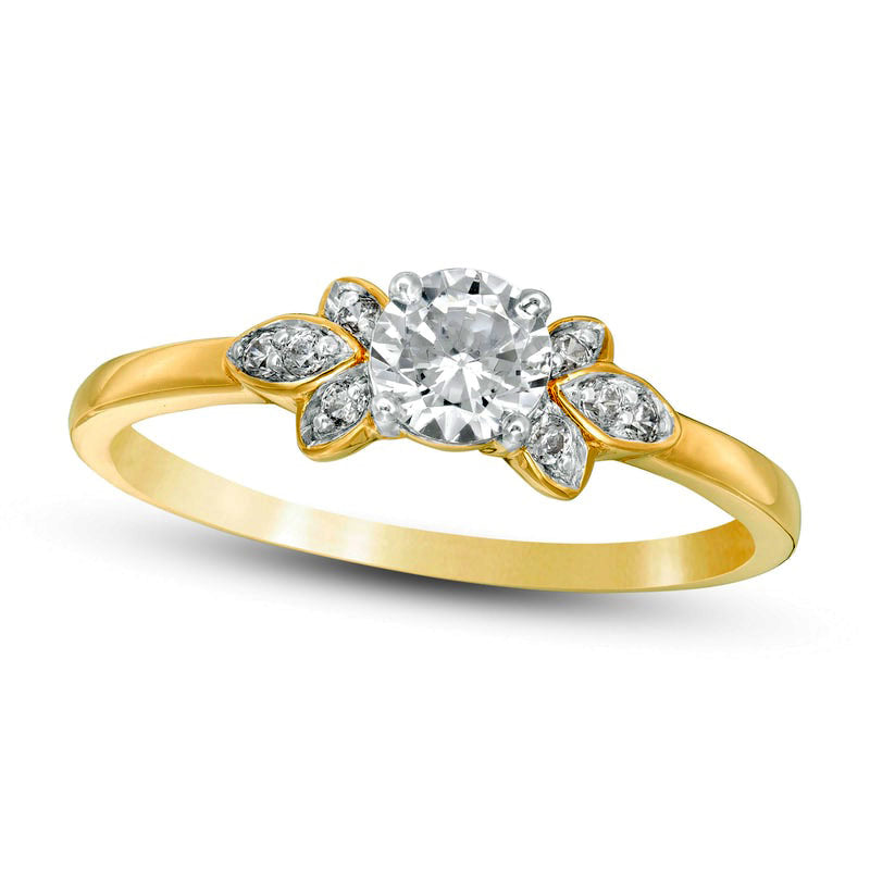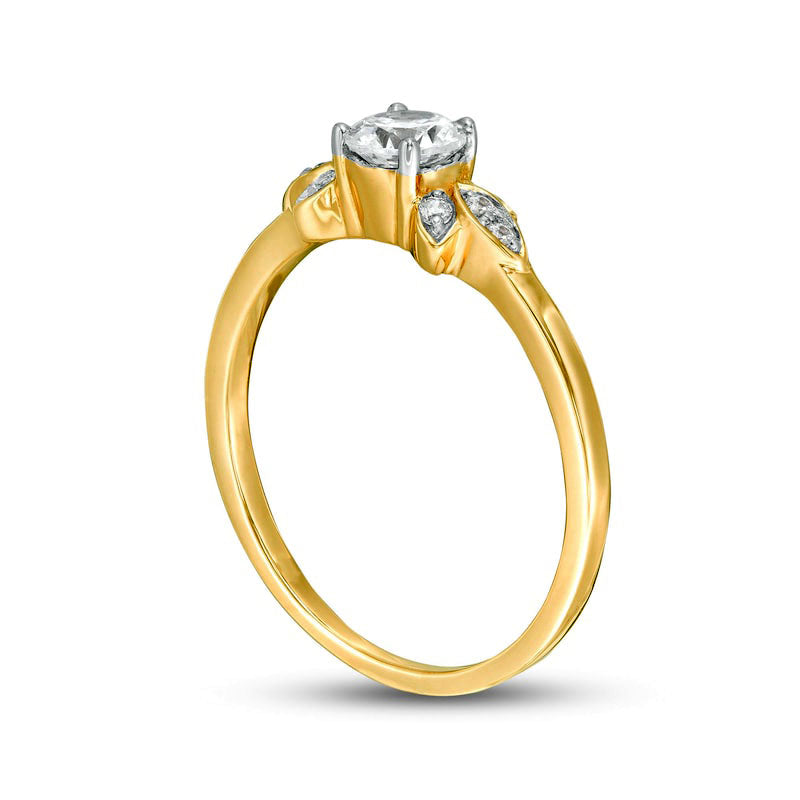 0.38 CT. T.W. Natural Diamond Petal Tri-Sides Engagement Ring in Solid 10K Yellow Gold