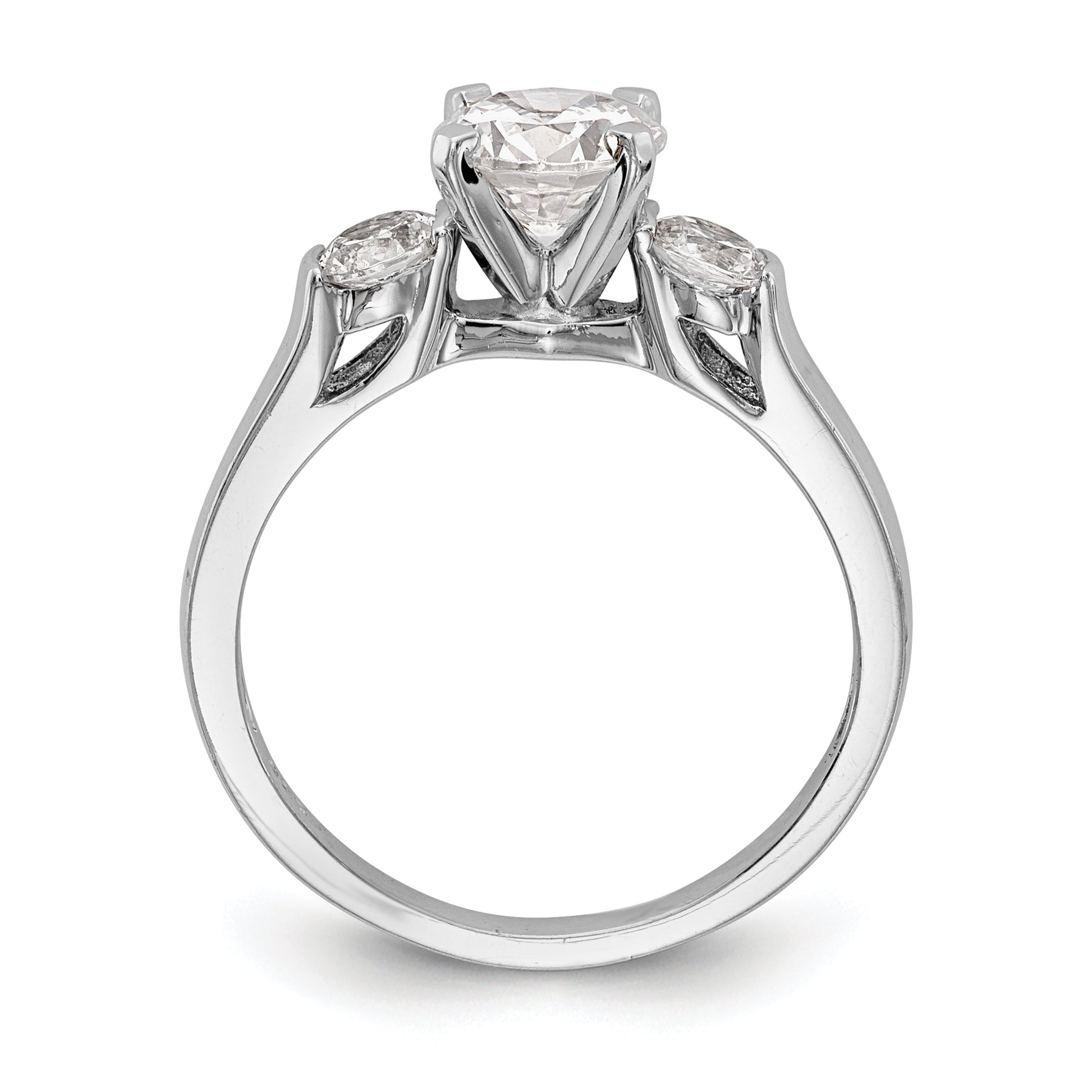 With a band width of 1.80 to 2.16 mm (tapered) and a head height of 6.16 mm, this engagement ring is both stylish and comfortable to wear. The closed back design ensures maximum security for the stones, while the rounded edge adds a touch of sophistication. Whether you're looking for an everyday ring, a promise ring, or a vacation-safe ring, this 14K White Gold 3-Stone Peg Set Engagement Ring is sure to become a cherished piece in your collection.