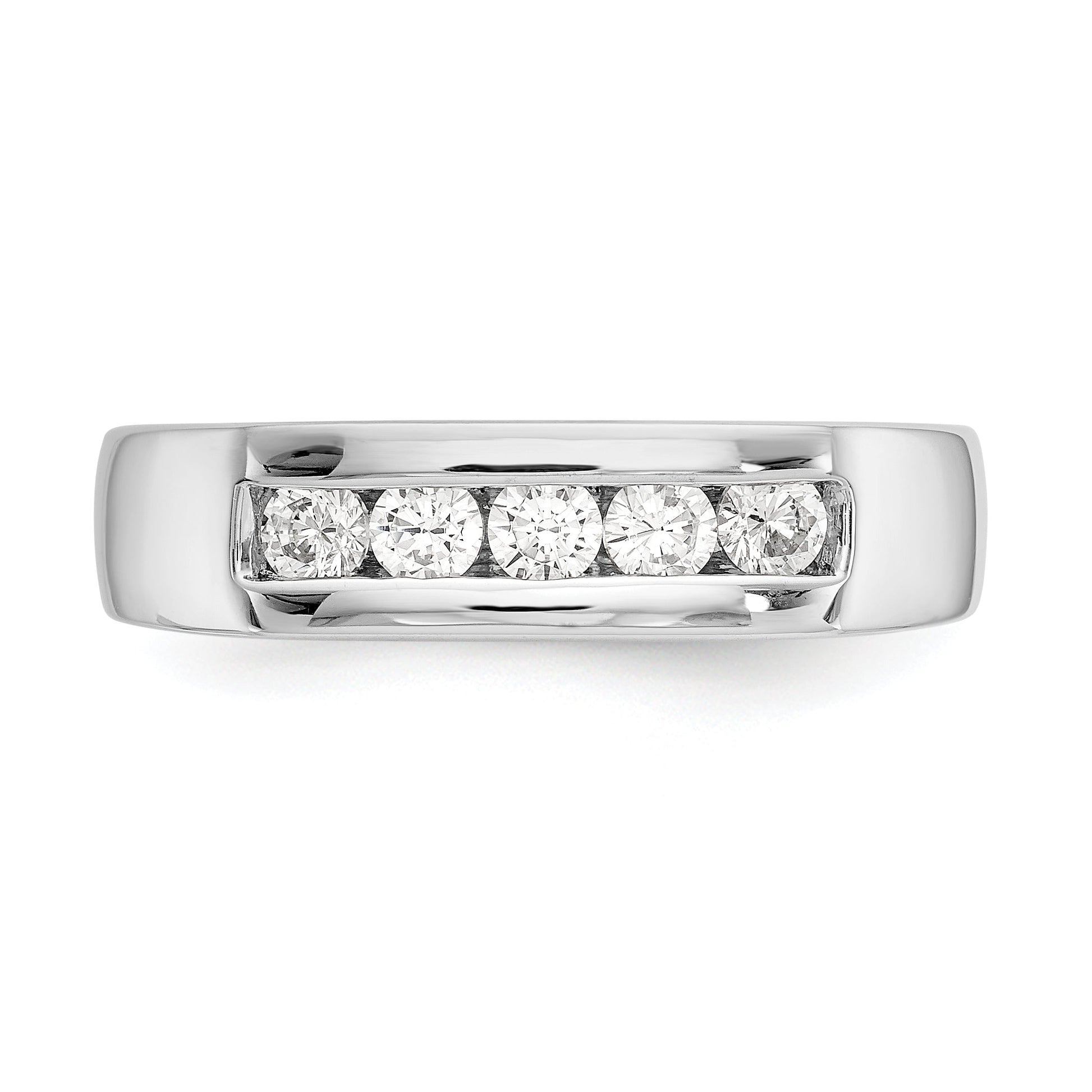 Featuring an elegant polished finish and a tapered band width of 5.4mm to 4mm, this ring is complete with all five stones included. It's sizeable from 6 to 8 with adjustment increments of 0.25. The stone size is 2.7mm and the thickness is less than 2mm. This ring is not recommended for engravings. Upgrade your jewelry collection with this exquisite piece that you will cherish forever.