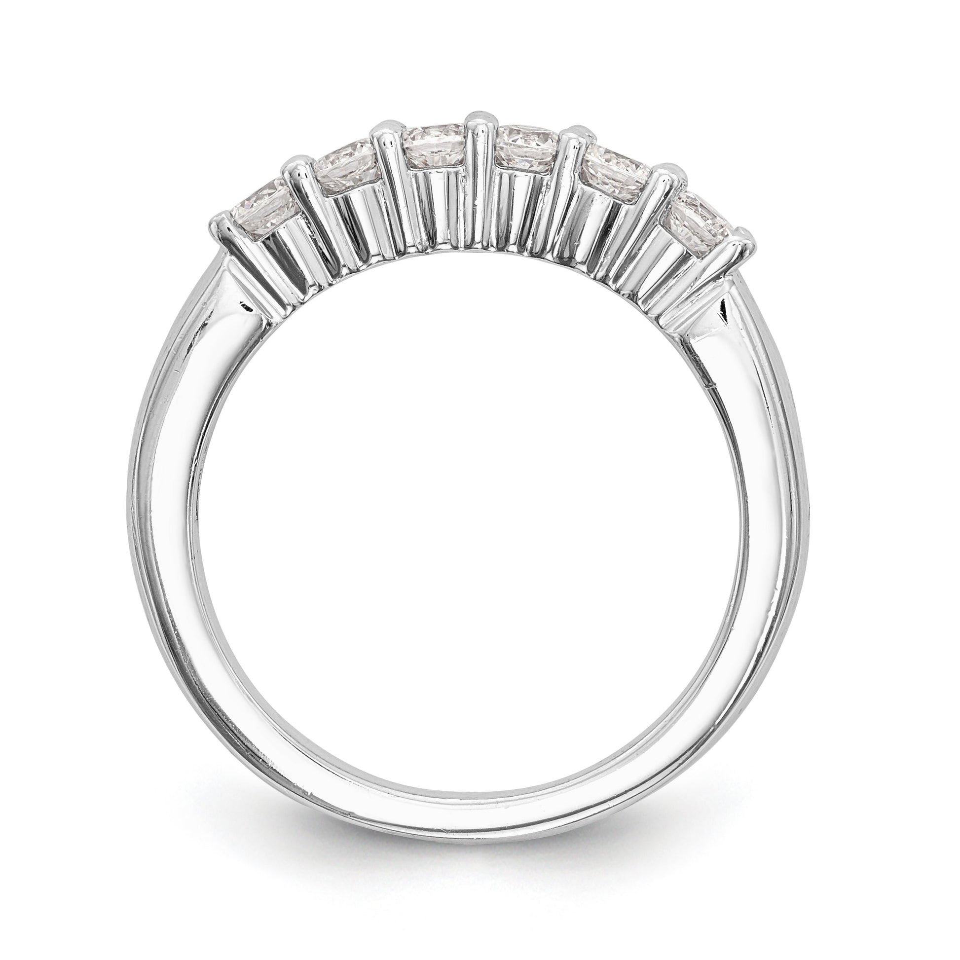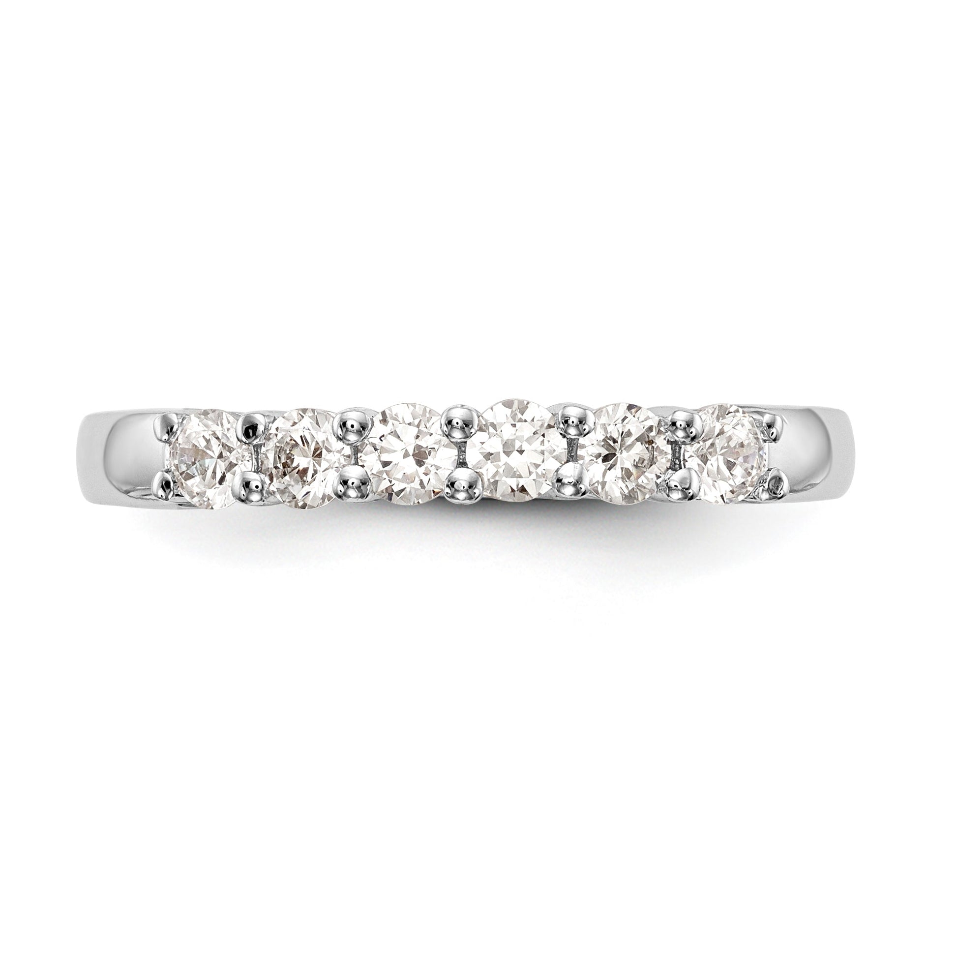 Material Primary - Purity 14K | Finish Polished | Stone Type_1 CZ (Cubic Zirconium) | Stone Quantity_1 6 | Plating Rhodium | Band Width 3 mm | Stone Weight_1 0.065 ct | Size (Minimum) 6 | Size (Maximum) 8 | Sizing Adjustment Increment 0.25 | Feature Solid | Manufacturing Process Casted | Material Primary Gold | Completeness Complete (all stones included) | Sizeable Yes | Stone Shape_1 Round | Stone Size_1 2.5 mm | Thickness < 2.5 mm | Product Type Jewelry | Jewelry Type Rings | Sold By Unit Each | Material Primary - Color White | Ring Type Wedding Bands | Feature 2 Closed Back | Stone Creation Method_1 Synthetic.