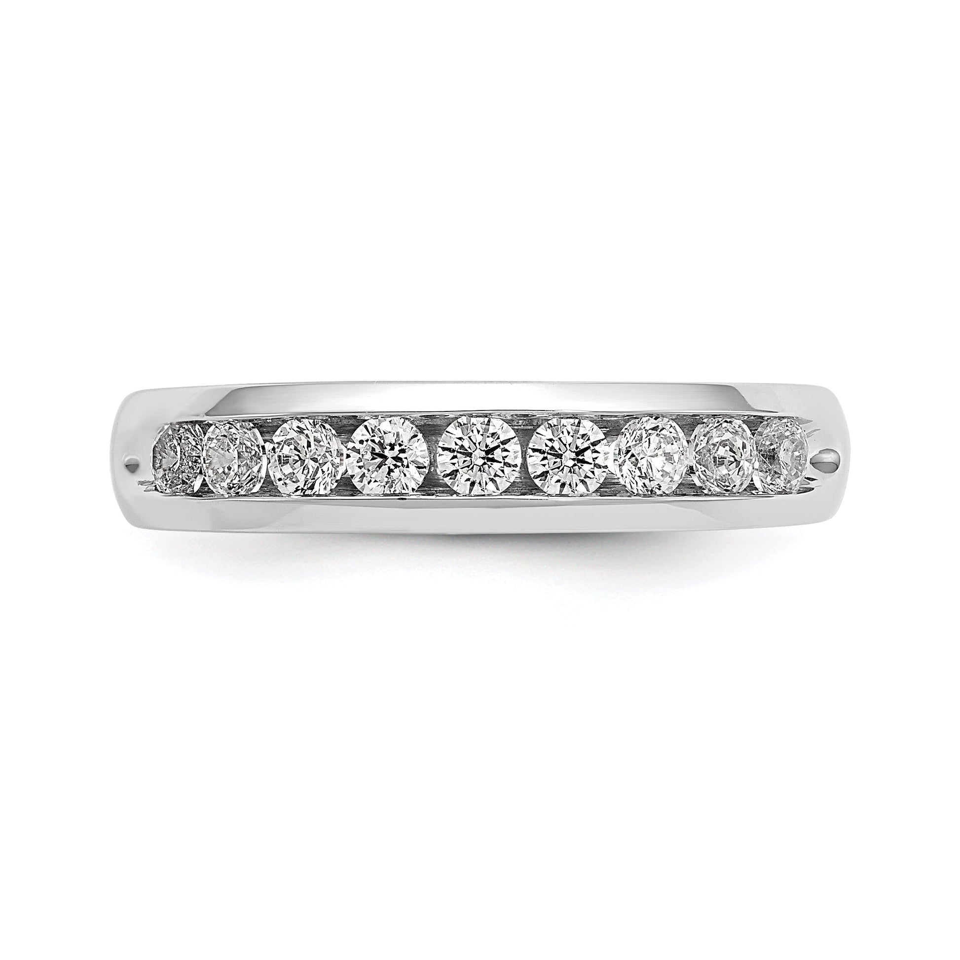Get stunning elegance with our 0.45ct. CZ Solid Real 14K White Gold 9-Stone Channel Wedding Band Ring. Made with real 14k gold, this ring won't oxidize or discolor - perfect for daily wear. Our experienced jewelers hand-set AAA quality cubic zirconia in a solid gold setting. Upgrade to natural diamonds upon request. This ring is perfect for a variety of occasions such as anniversaries, weddings, Mother's Day, and Valentine's Day. Our ring comes with a 30-day, hassle-free, money-back guarantee and complimentary gift box. The band width tapers from 4.2 to 3.3 mm and is sizeable. This is a mounting only - no stones included. Upgrade your collection with our Closed Back Ring today!
