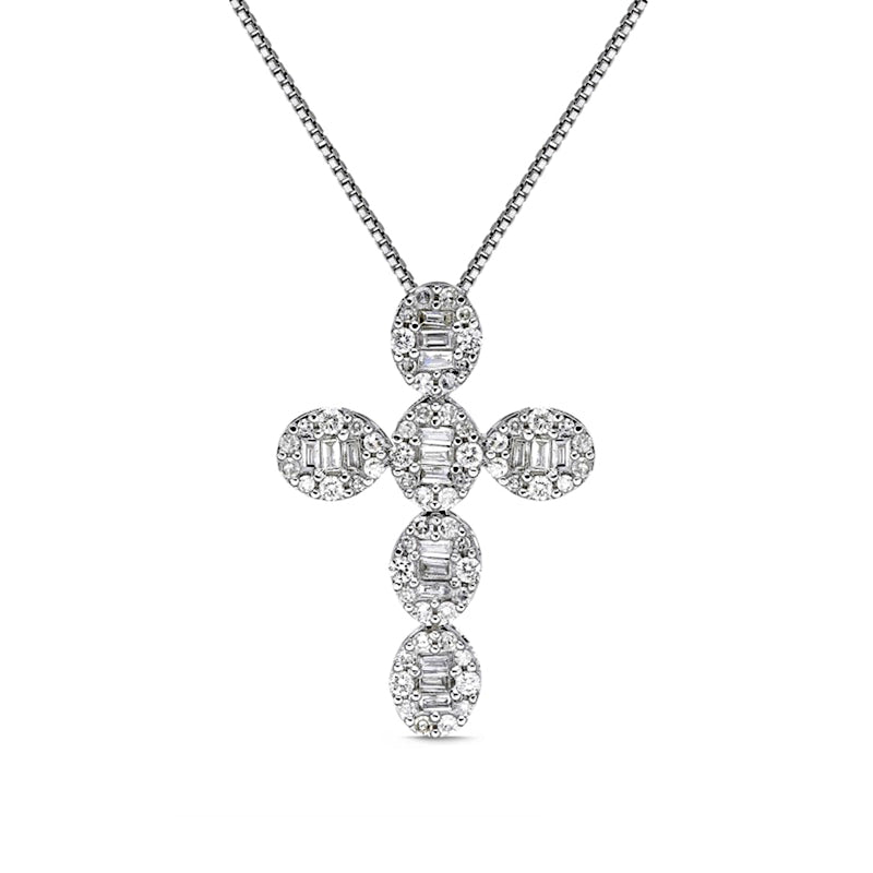 0.5 CT. T.W. Baguette and Round Natural Diamond Cross Pendant in 14K White Gold