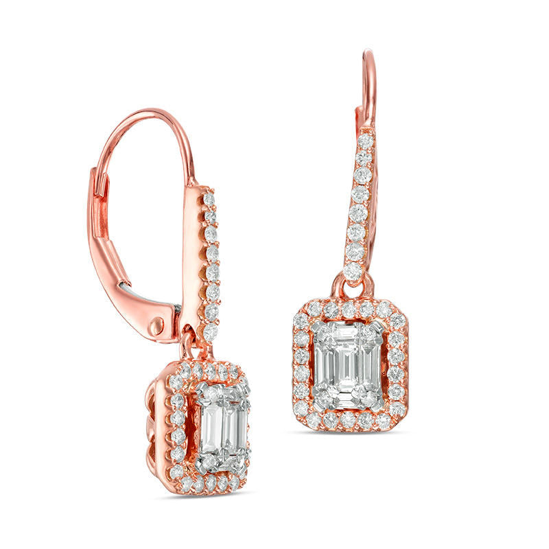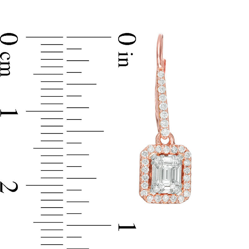 0.5 CT. T.W. Composite Baguette Diamond Rectangle Frame Drop Earrings in 14K Rose Gold