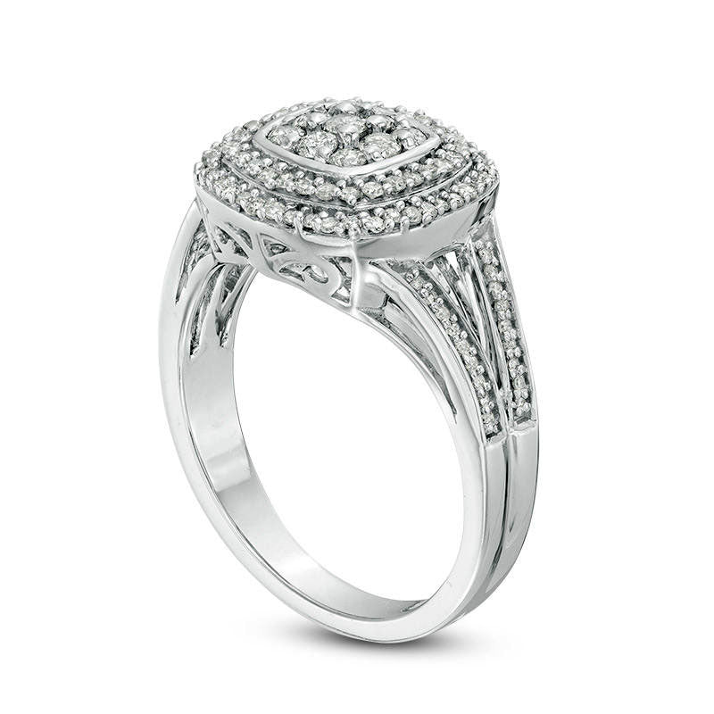 0.50 CT. T.W. Composite Natural Diamond Double Cushion Frame Split Shank Engagement Ring in Sterling Silver