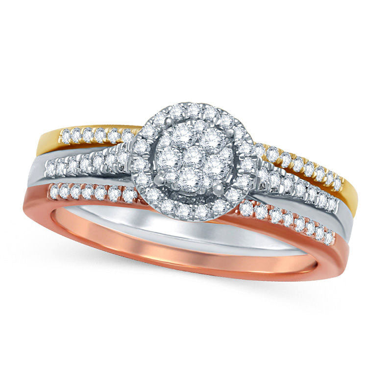 0.50 CT. T.W. Composite Natural Diamond Frame Bridal Engagement Ring Set in Solid 10K Rose Gold