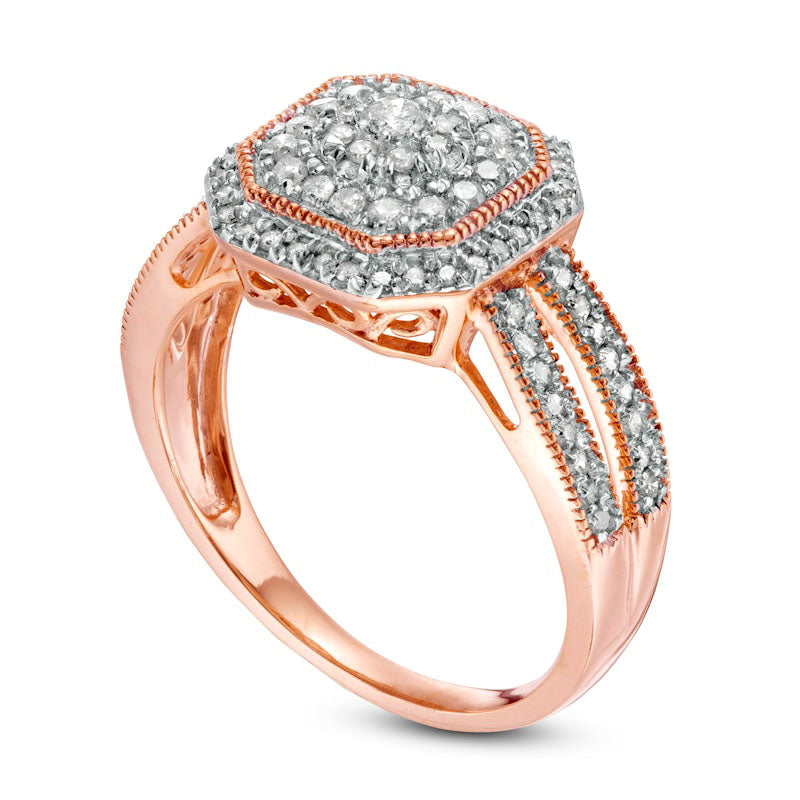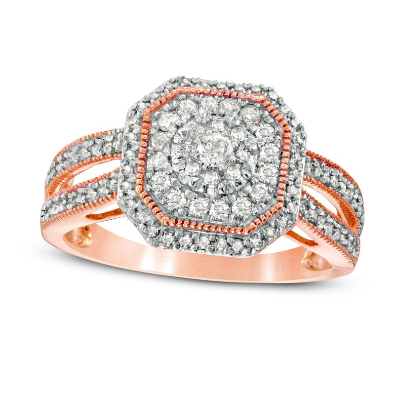 0.50 CT. T.W. Composite Natural Diamond Octagonal Frame Antique Vintage-Style Split Shank Engagement Ring in Solid 10K Rose