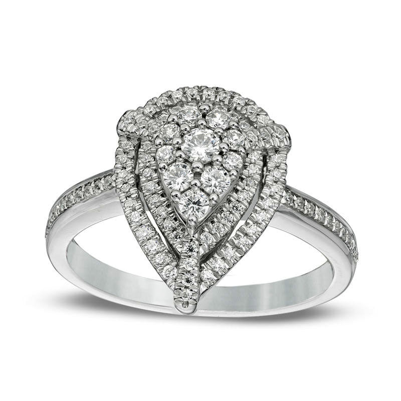 0.50 CT. T.W. Composite Natural Diamond Teardrop-Shaped Frame Engagement Ring in Solid 10K White Gold