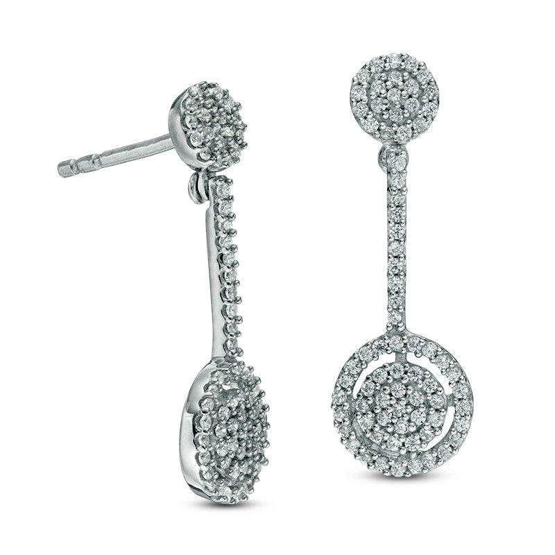 0.5 CT. T.W. Diamond Double Frame Pendulum Drop Earrings in 10K White Gold