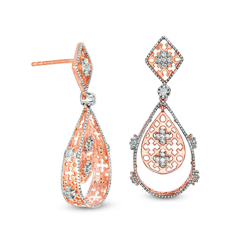 0.5 CT. T.W. Diamond Lattice Double Pear-Shaped Drop Earrings in 10K Rose Gold
