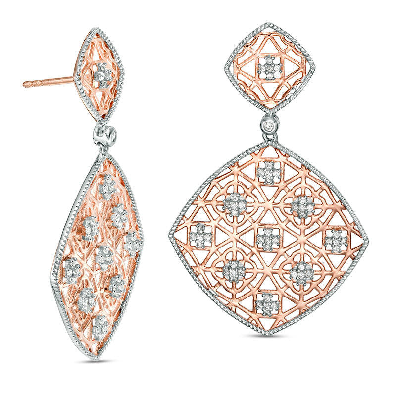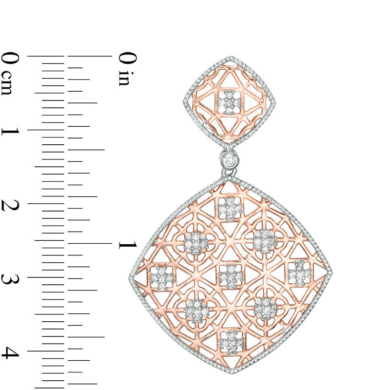 0.5 CT. T.W. Diamond Lattice Tilted Square Drop Earrings in 10K Rose Gold