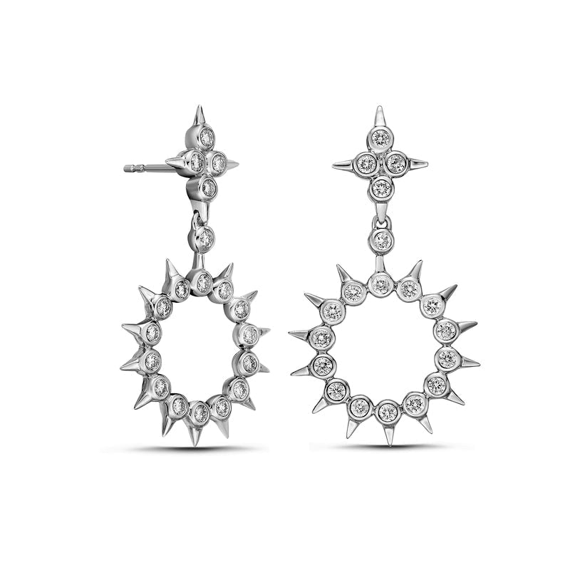 0.5 CT. T.W. Diamond Spikes Open Circle Drop Earrings in 10K White Gold