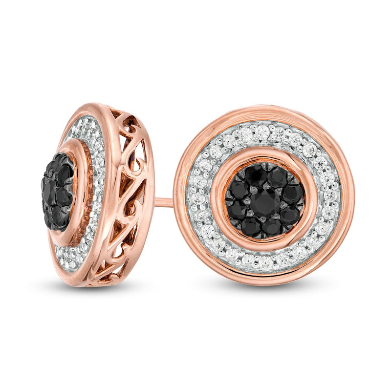 0.5 CT. T.W. Enhanced Black Composite and White Diamond Frame Stud Earrings in 10K Rose Gold