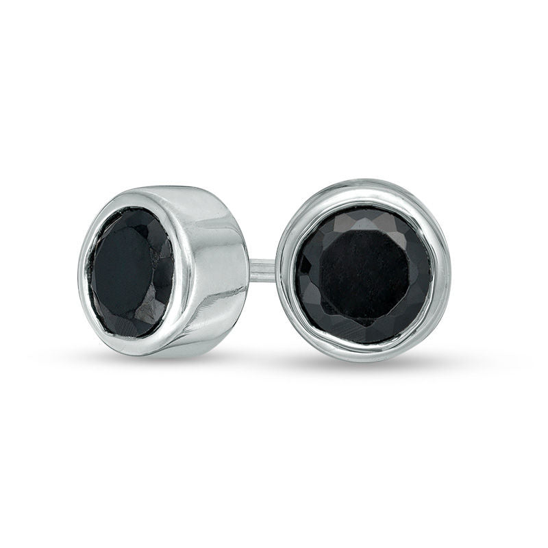0.5 CT. T.W. Enhanced Black Diamond Bezel-Set Solitaire Stud Earrings in 10K White Gold