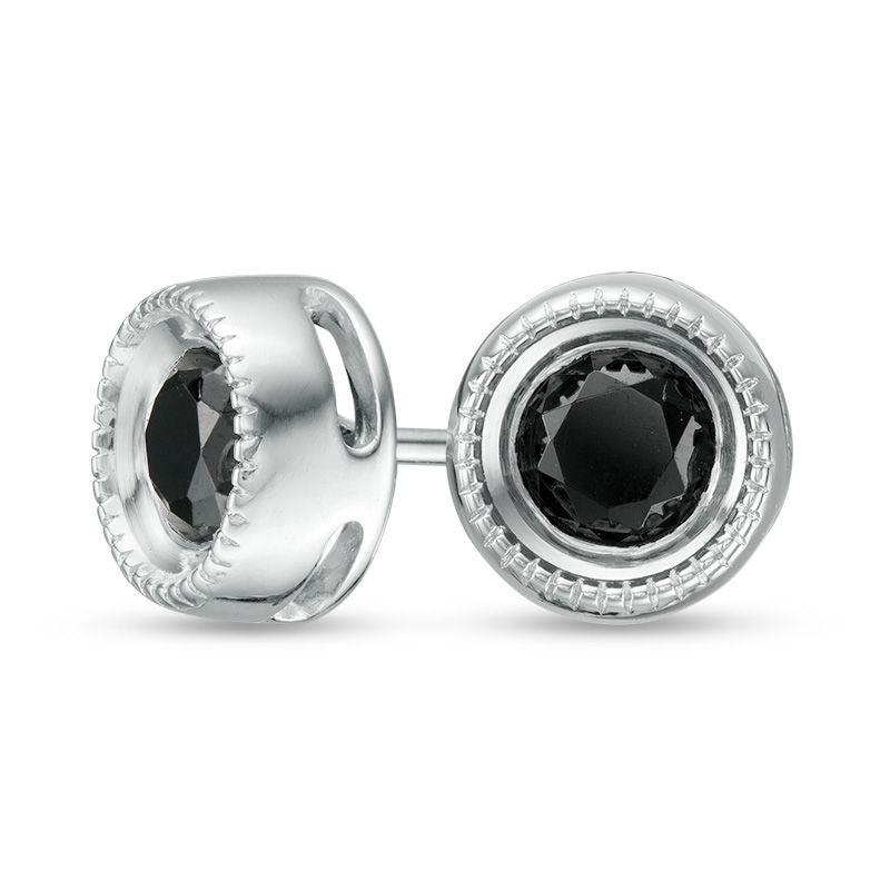 0.5 CT. T.W. Enhanced Black Diamond Bezel-Set Solitaire Vintage-Style Stud Earrings in 10K White Gold