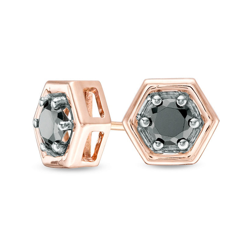 0.5 CT. T.W. Enhanced Black Diamond Solitaire Hexagon Stud Earrings in 10K Rose Gold