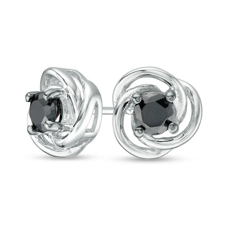 0.5 CT. T.W. Enhanced Black Diamond Solitaire Love Knot Stud Earrings in 10K White Gold