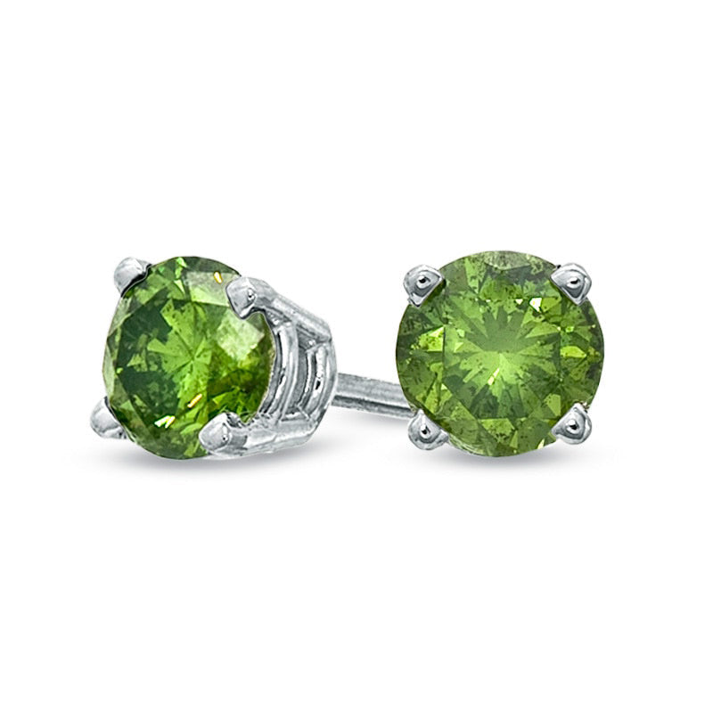 0.5 CT. T.W. Enhanced Green Diamond Solitaire Stud Earrings in 14K White Gold