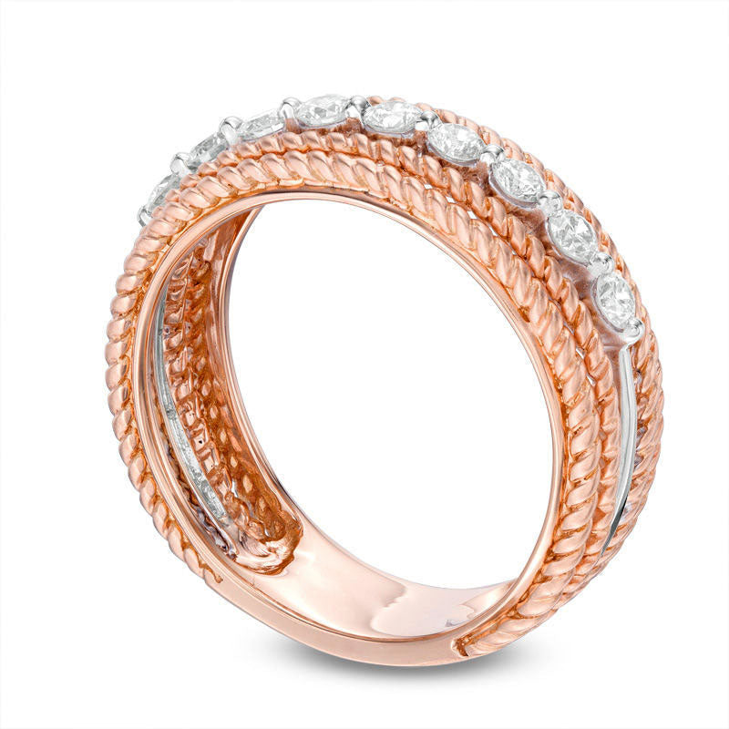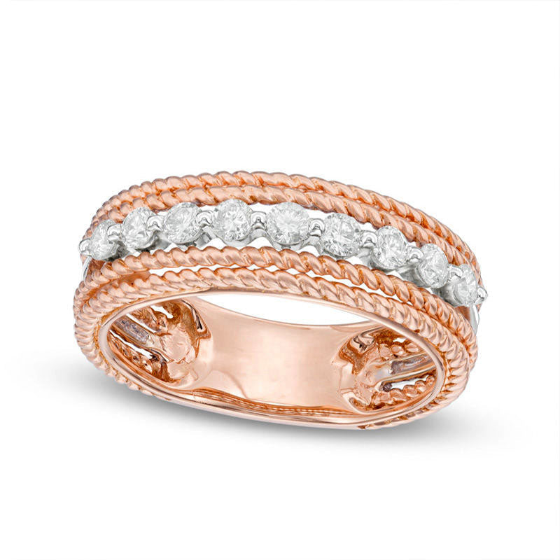 0.50 CT. T.W. Natural Diamond Braided Rope Edge Anniversary Band in Solid 14K Two-Tone Gold