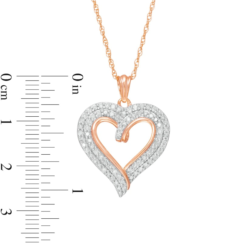 0.5 CT. T.W. Natural Diamond Double Row Curly Heart Pendant in 10K Rose Gold