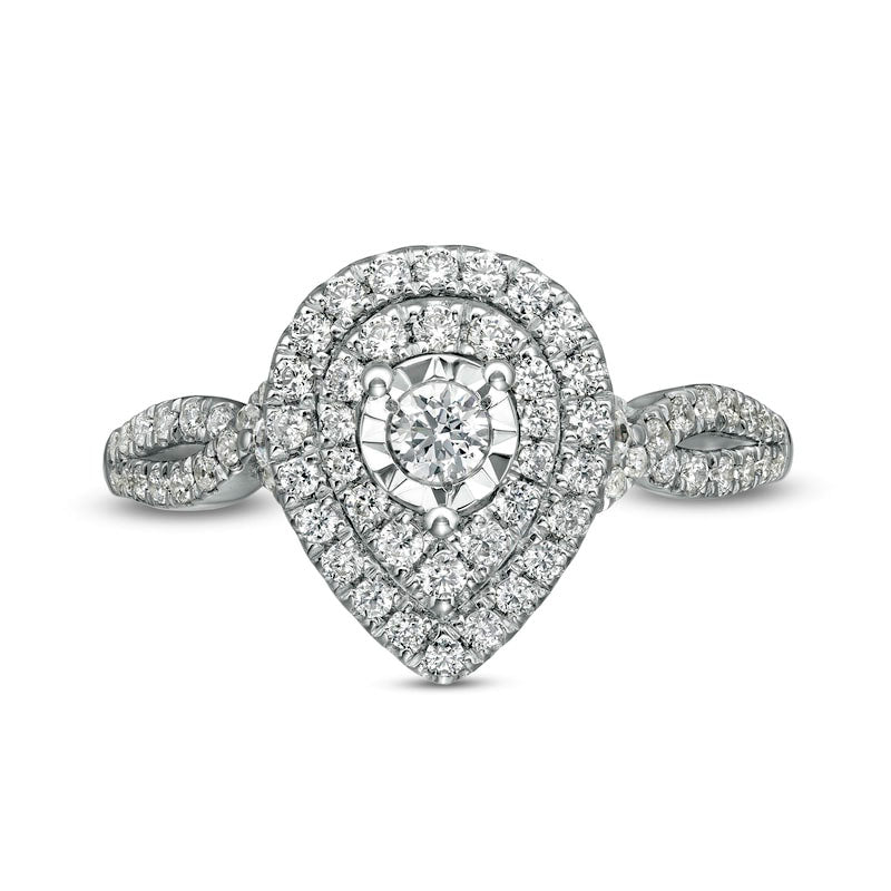 0.50 CT. T.W. Natural Diamond Double Teardrop Frame Split Shank Engagement Ring in Solid 10K White Gold