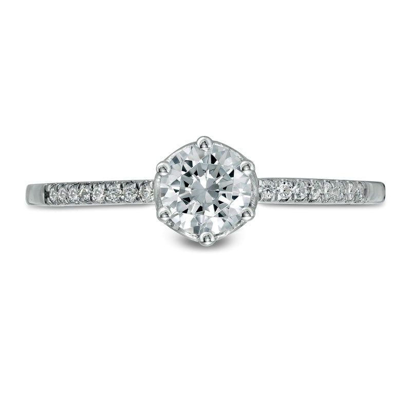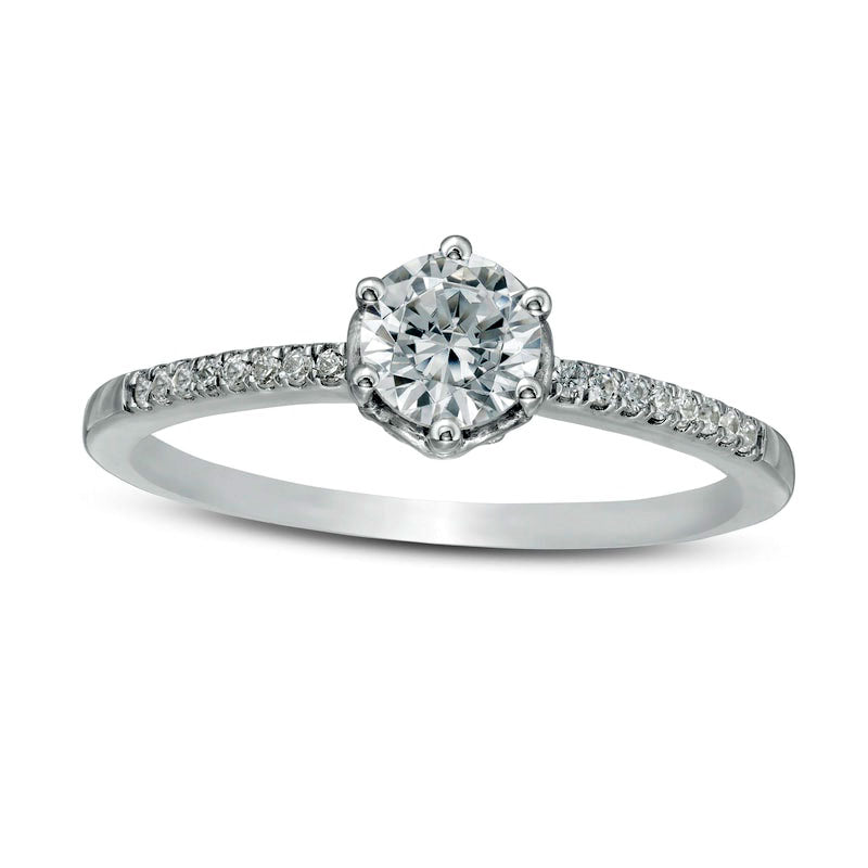 0.50 CT. T.W. Natural Diamond Scalloped Setting Engagement Ring in Solid 10K White Gold