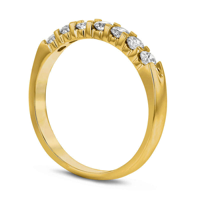 Mark a special occasion with the stunning 1/2 CT. T.W. Diamond Seven Stone Anniversary Band in 14K Gold (G/SI2). This exquisite band is crafted from 14K gold and features seven...