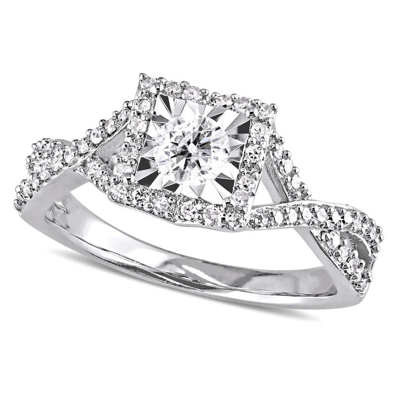 0.50 CT. T.W. Natural Diamond Square Frame Twist Engagement Ring in Sterling Silver
