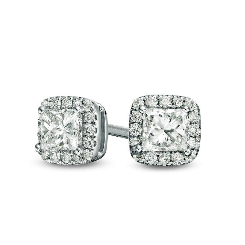 0.5 CT. T.W. Princess-Cut Diamond Frame Stud Earrings in 14K White Gold