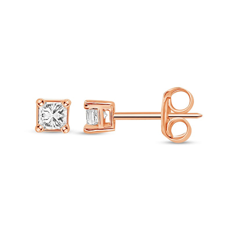 0.5 CT. T.W. Princess-Cut Diamond Solitaire Stud Earrings in 14K Rose Gold (I/I2)