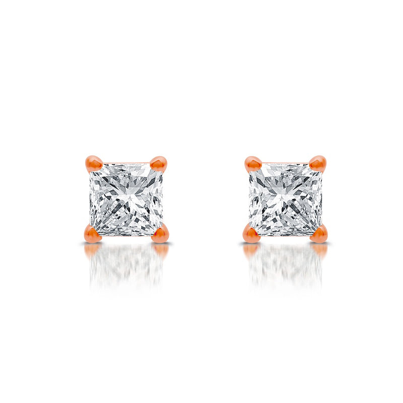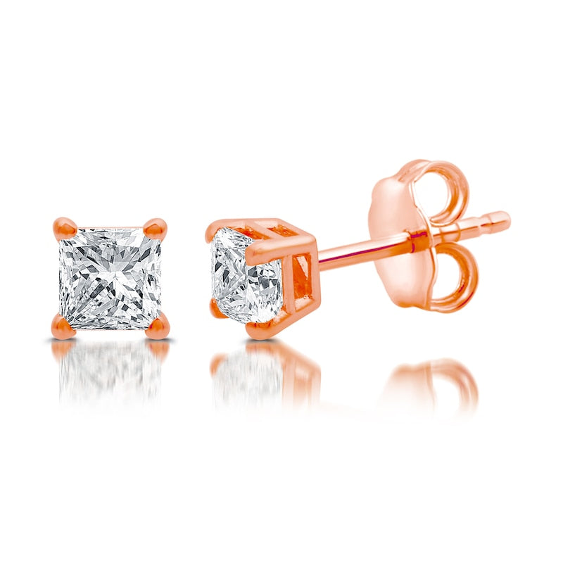 0.5 CT. T.W. Princess-Cut Diamond Solitaire Stud Earrings in 14K Rose Gold (J/I3)