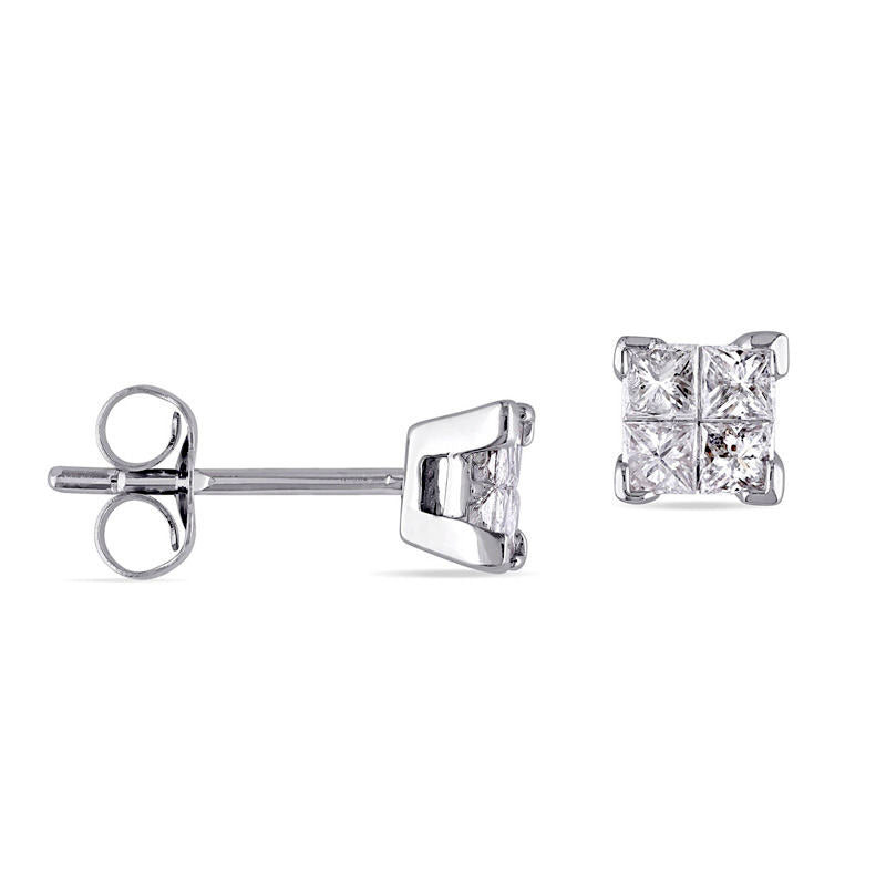 0.5 CT. T.W. Quad Princess-Cut Diamond Stud Earrings in 10K White Gold