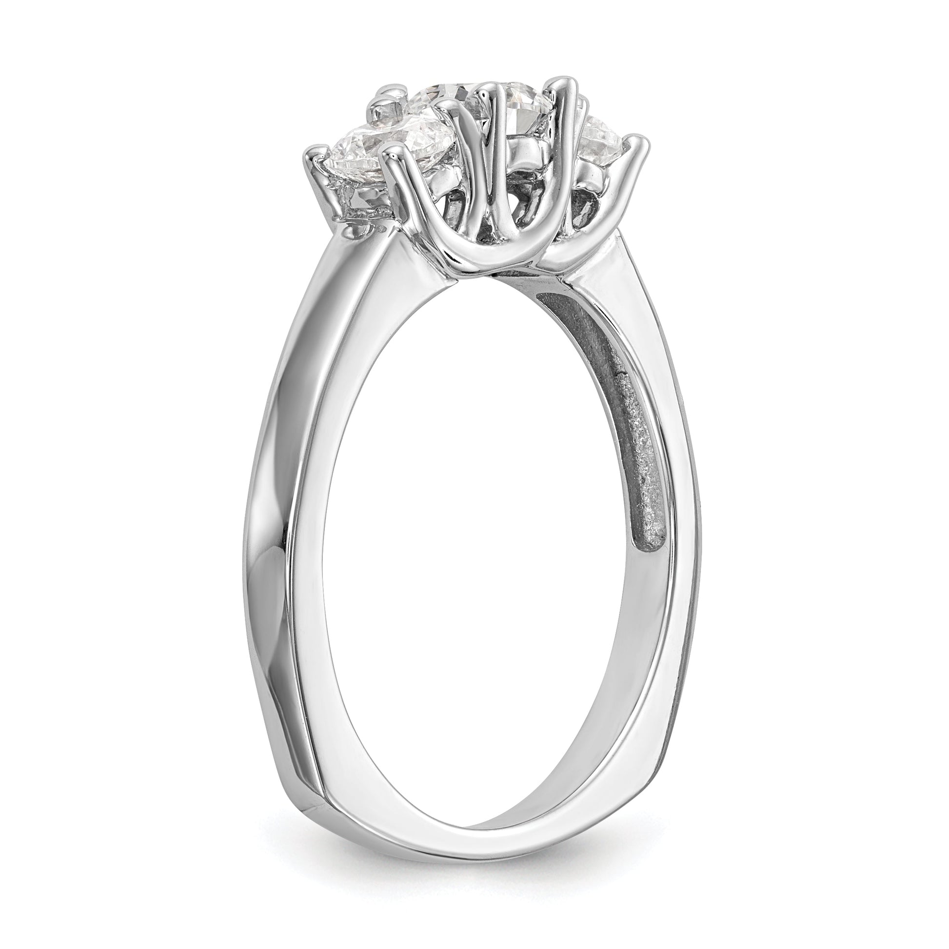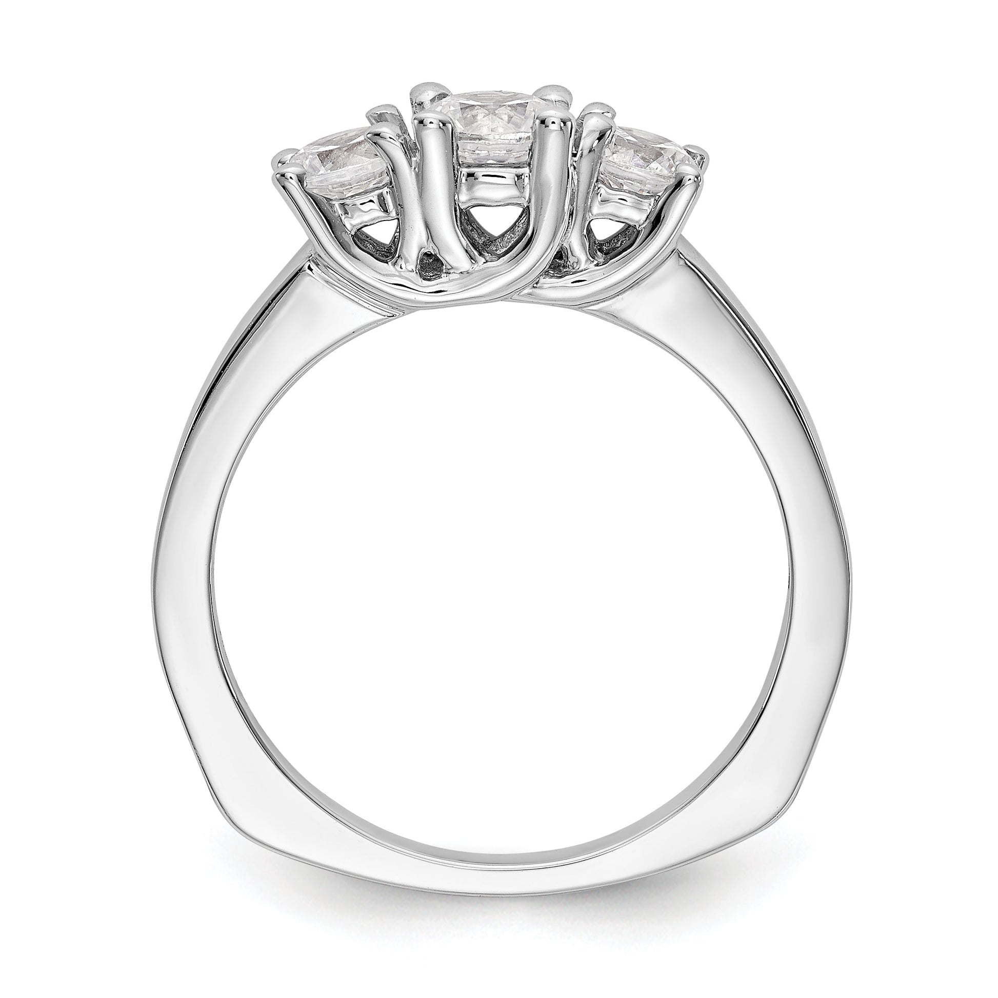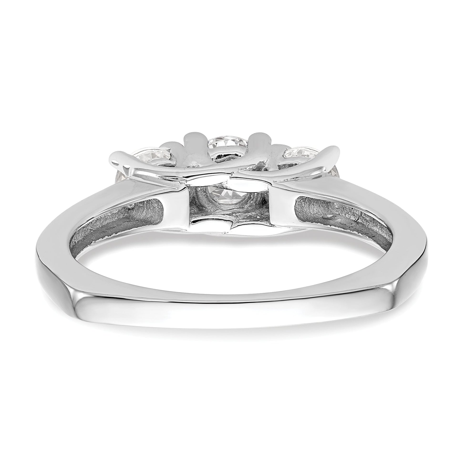 Gift your loved one an incredible engagement ring with this stunning '0.50ct. CZ Solid Real 14K White Gold 3-Stone Engagement Ring'. Crafted in real 14k white gold, its authenticity is stamped with a 14K symbol for exceptional quality. The gold won't oxidize or discolor, and the AAA quality cubic zirconia stones are hand-set and high-polished by experienced jewelers. You can even upgrade to real diamonds for an additional cost by contacting us. Perfect for any occasion, this ring is fit for birthdays, anniversaries, Valentine's Day, weddings, Mother's Day and more. This vacation-safe ring is also an ideal everyday, promise or vacation ring. You can always feel confident in your purchase with our 30-day, hassle-free, money-back guarantee. Further, our USA-based company prides itself on superior customer service. The rhodium plating highlights the polished finish of the ring, which features tapered band width ranging from 1.9 to 2.5mm. It flaunts a head height of 6.15mm and is semi-mount, with an open back and a rocker shank ring shape. The ring top length is 4.89mm and width 13.14mm with a flat edge type. You can choose the size from 6 (minimum) to 8 (maximum) in 0.25 increments. With a total weight of 0.50ct, the ring features four round, faceted and synthetic cubic zirconia stones of 2.5mm each. The center stone mounting has an April birthstone month, sits on a 4 prong round head type, and has a grade of G-I with the side stones of G-H-I grade. This elegant engagement ring is sure to turn heads and will come ready-to-gift with a complimentary gift box.