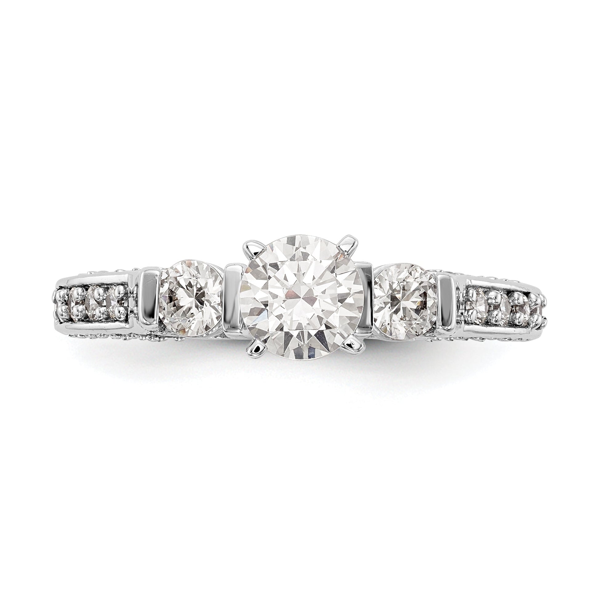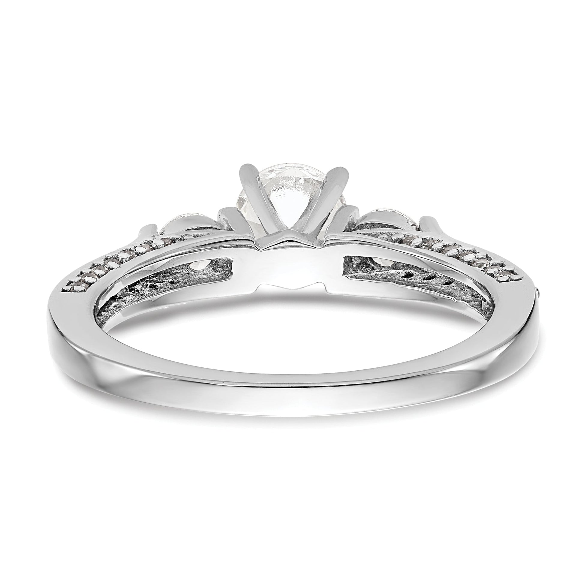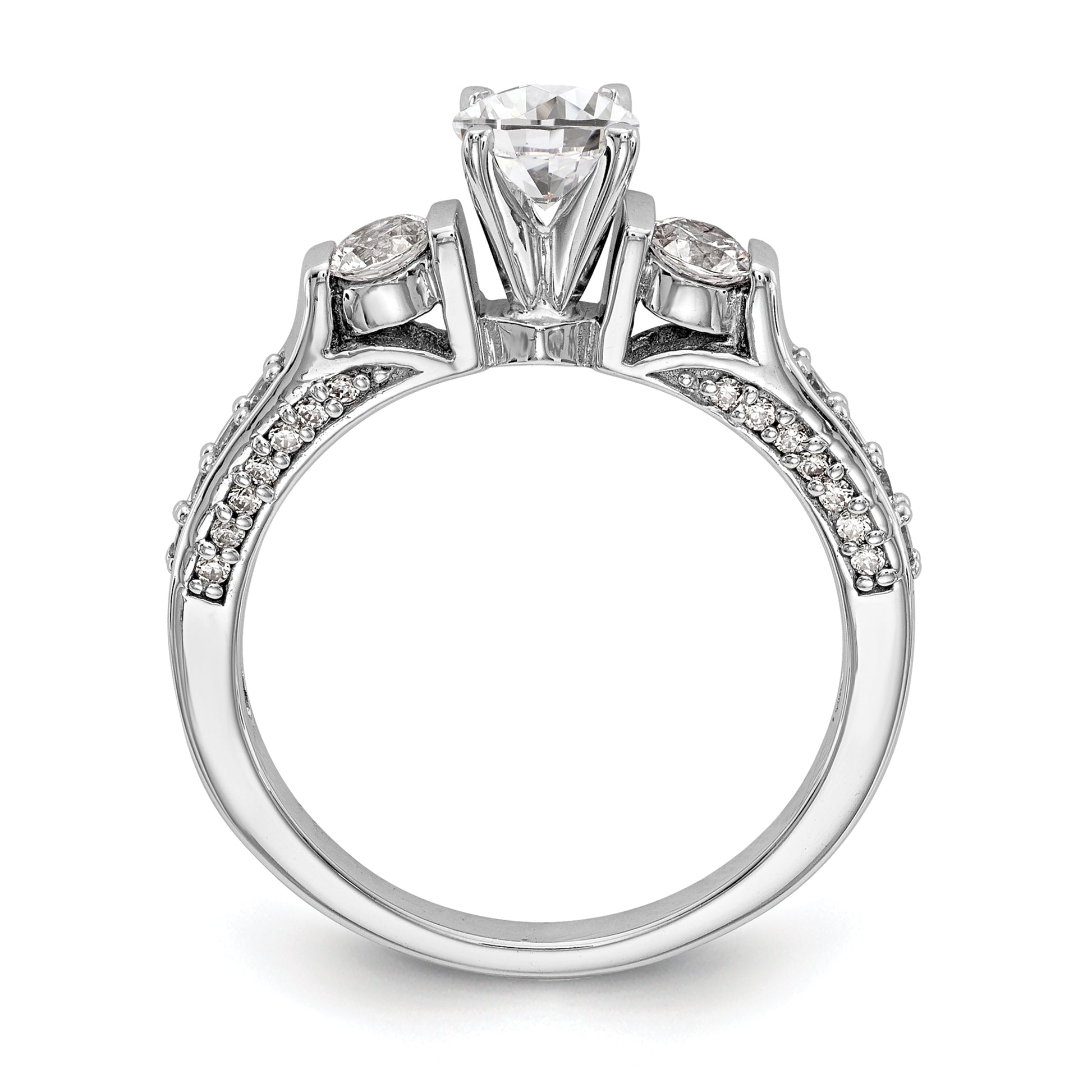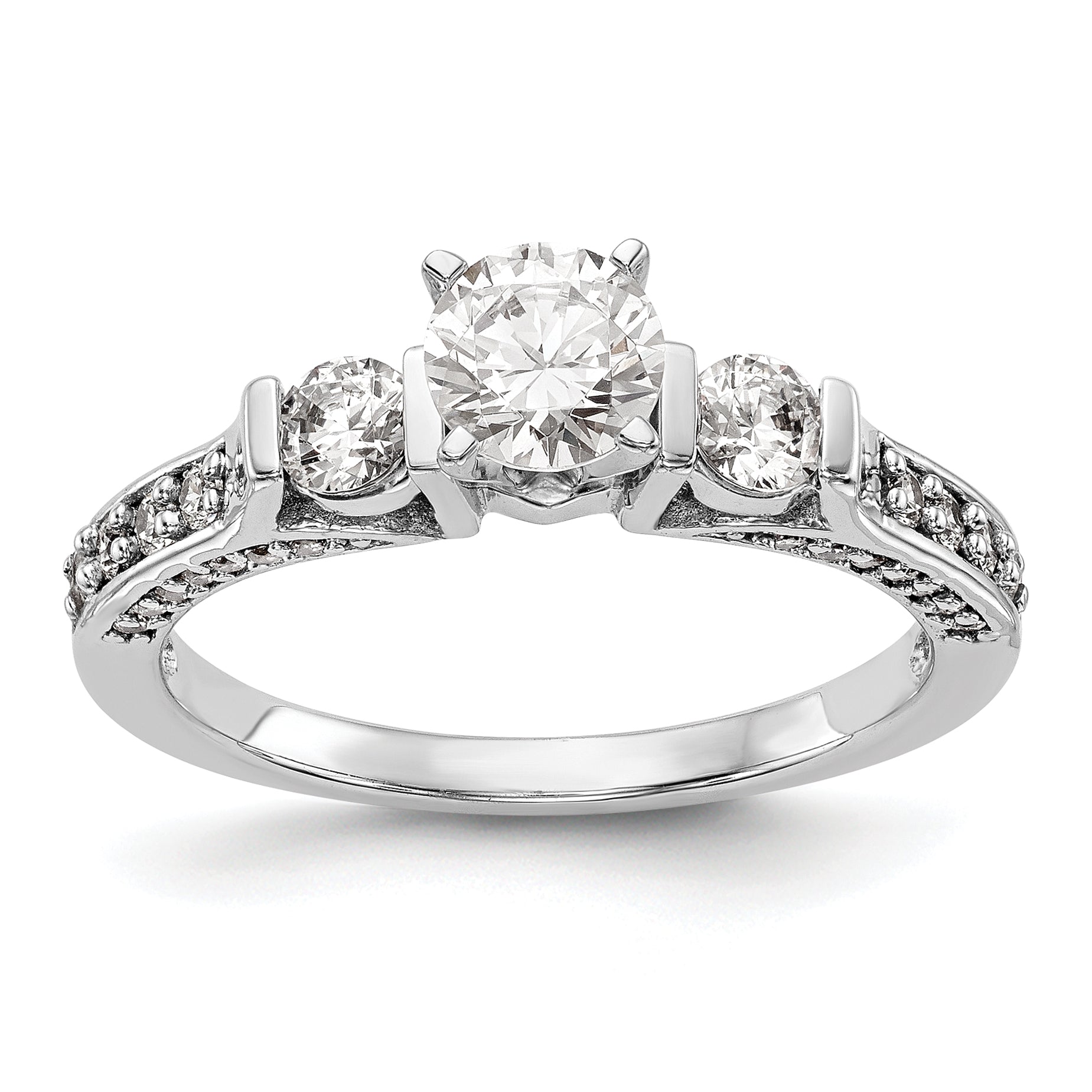 Experience the beauty and elegance of this real 14K white gold 3-stone peg set engagement ring today.
